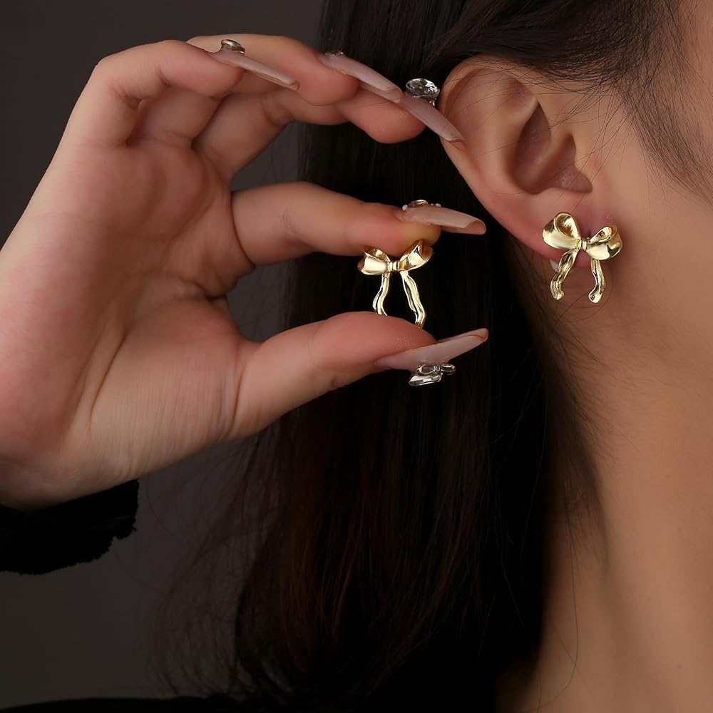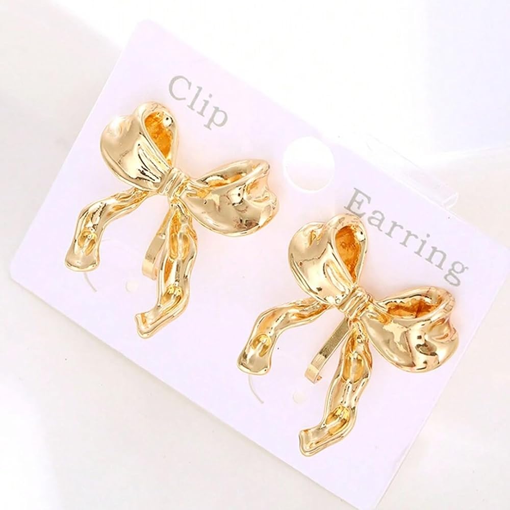 - أقراط بمشبك ذهبي: تتميز هذه الأقراط بتصميم أنيق على شكل فيونكة، وهي مثالية لإضفاء لمسة مرحة ومتطورة.