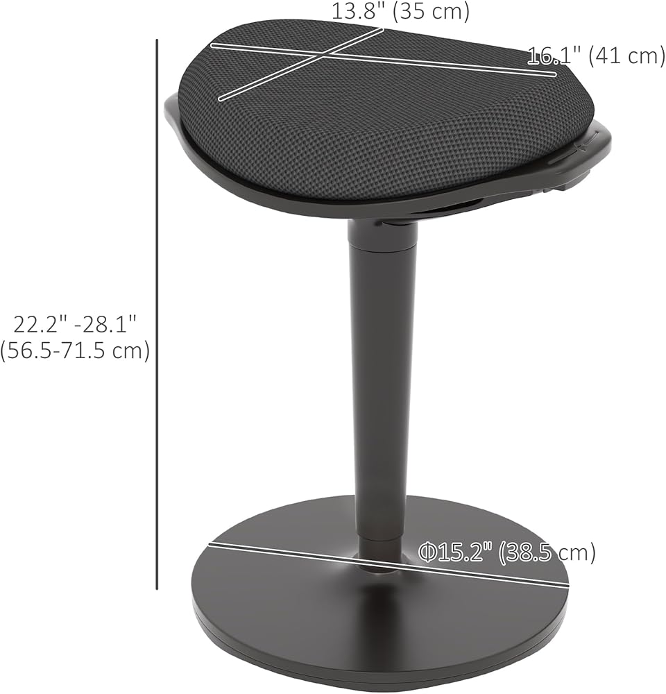 HOMCOM كرسي مكتب واقف، مقعد تمايل مريح بدون ظهر، كرسي مكتب طويل قابل للتعديل بارتفاع 22.2-28.1 بوصة، مقعد تعلم نشط لمكاتب المكتب، مع حركة هزازة، مبطن، أسود