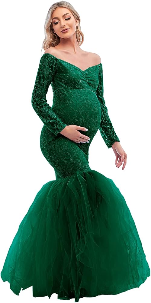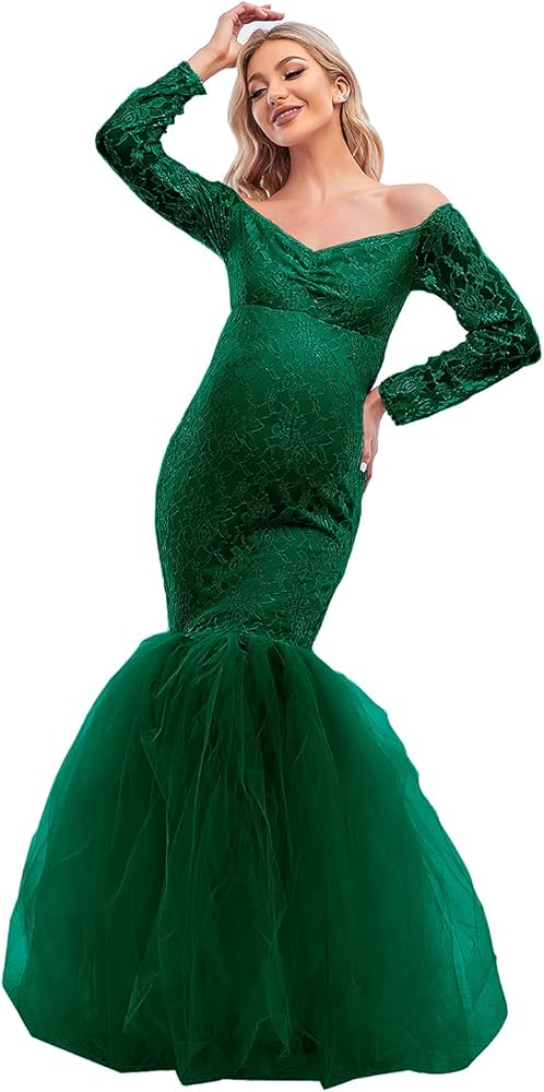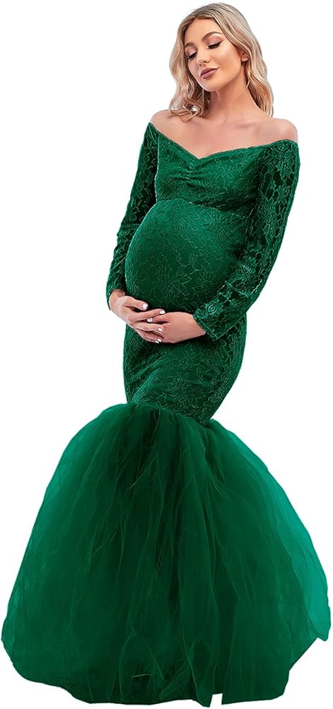 المزايا: أكمام طويلة، بدون أكتاف، مقاس نحيف، تصميم عالي الخصر، مغطى بالكامل بالدانتيل. نمط حورية البحر مع تنورة من التول يبدو رومانسيًا ورائعًا؛ تصميم أنيق بدون أكتاف يُظهر الخطوط الجميلة لعظام الترقوة والأكتاف؛ ثوب نحيف مناسب يحدد شكلك المثالي وبطن طفلك الرائع دون عناء