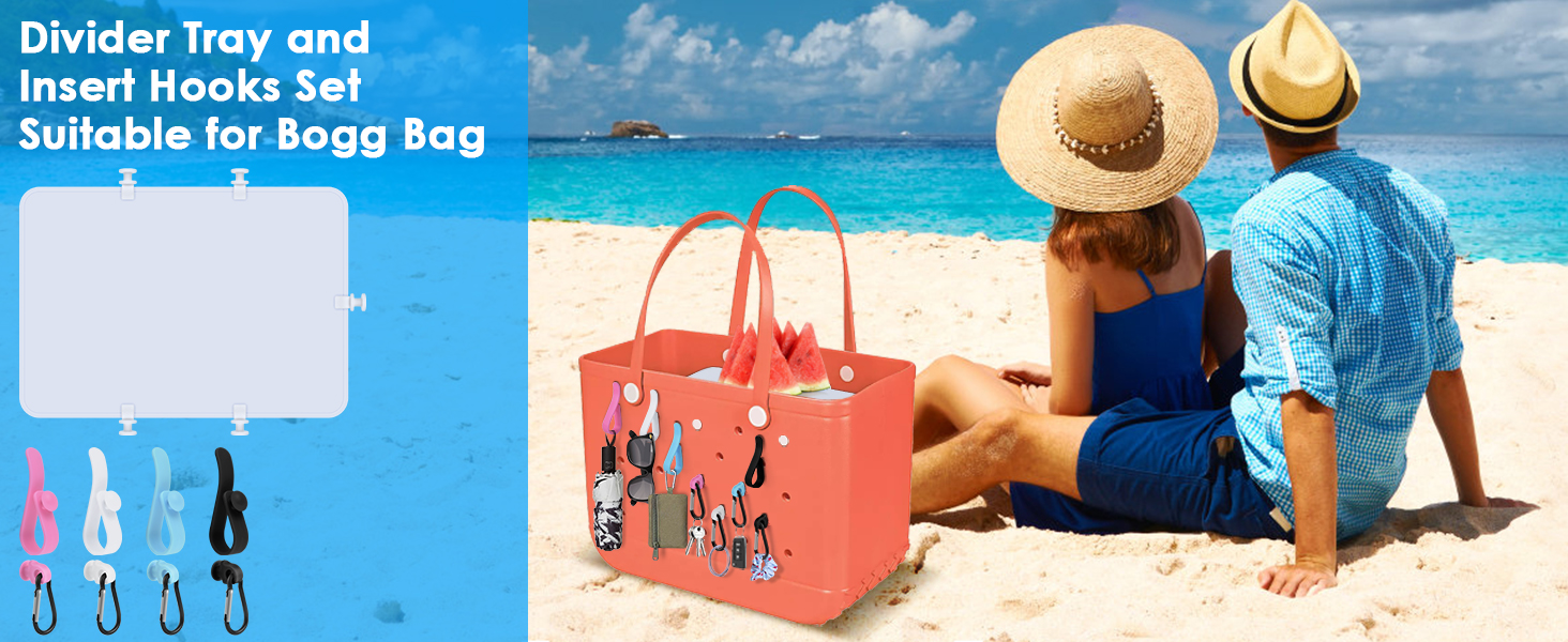 صينية مقسمة من ERKOON لحقيبة Bogg، مجموعة خطافات مكونة من 4 قطع وإكسسوارات حامل سلسلة مفاتيح ساحرة متوافقة مع حقائب Bogg الأصلية الكبيرة جدًا تساعد في تنظيم حقيبتك وتقسيم المساحة