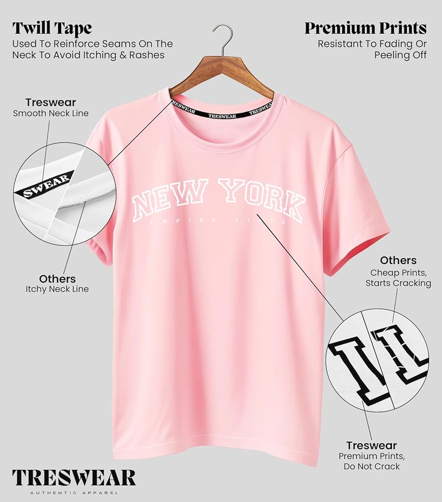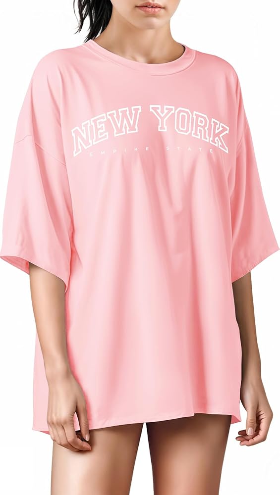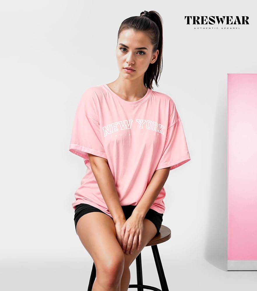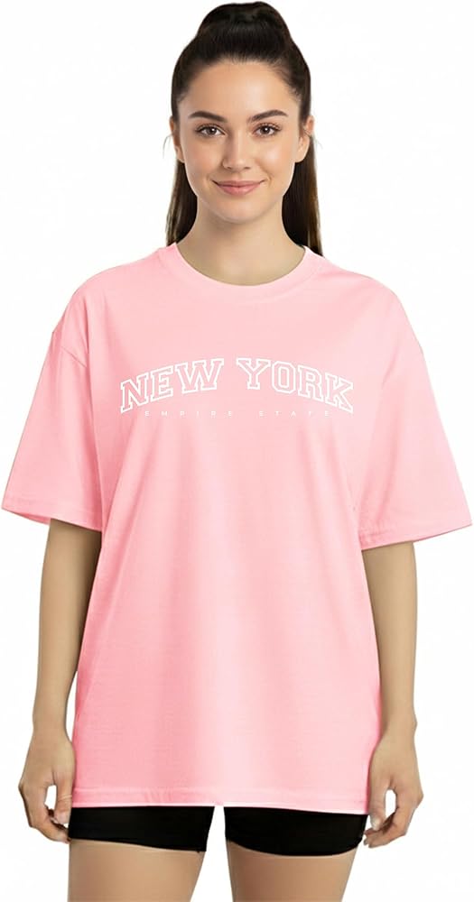 The stylish city names graphics on loose tshirts for women are created using high-quality screen printing techniques, resulting in vibrant and long-lasting designs. These graphics are designed to withstand multiple washes without peeling or fading, keeping your t-shirt looking fresh and new.