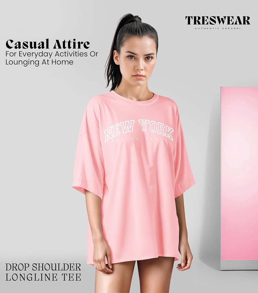 Treswear's oversized t shirts for women are made from lightweight polycotton fabric, these t-shirts offer exceptional comfort and durability, making them an essential addition to your wardrobe. Designed for a trendy oversized fit, they are perfect for various occasions, from casual outings to lounging at home.
