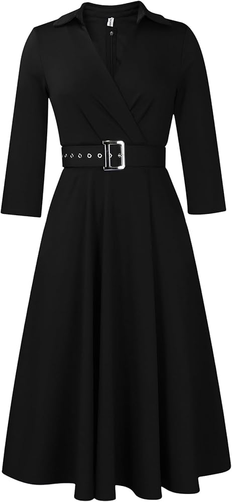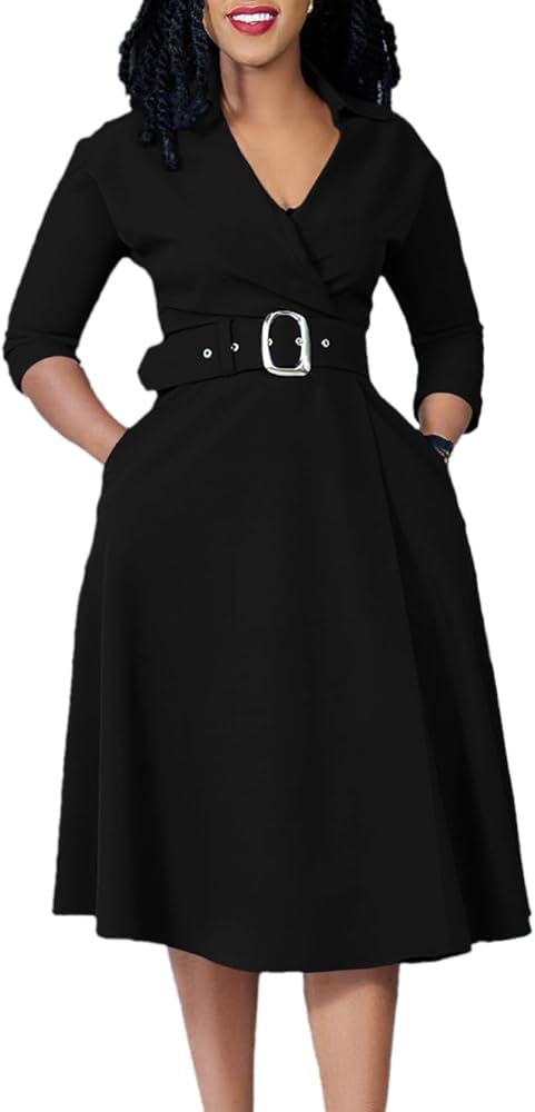 المطابقة: فساتين العمل المتأرجحة للسيدات تتناسب بشكل مثالي مع الكعب/الأوتاد، والأقراط البسيطة والقلادة والساعة تجعلك أكثر كفاءة في العمل. يمكن إزالة الحزام وارتداؤه وفقًا لتفضيلاتك.