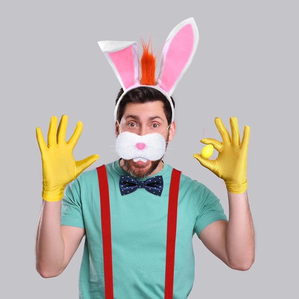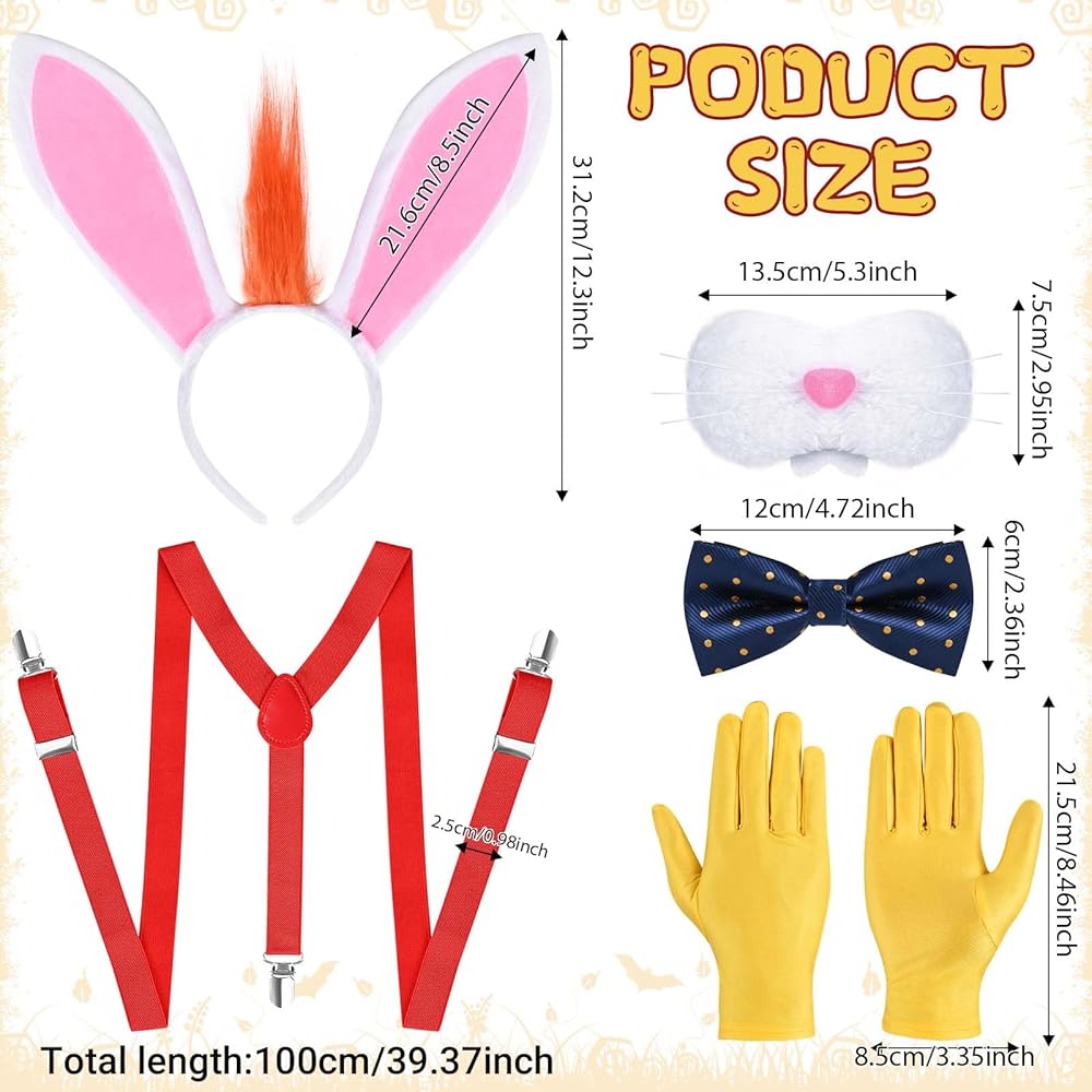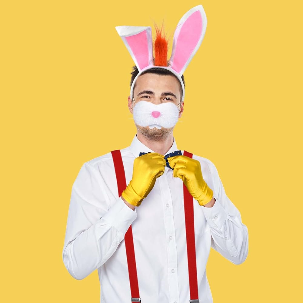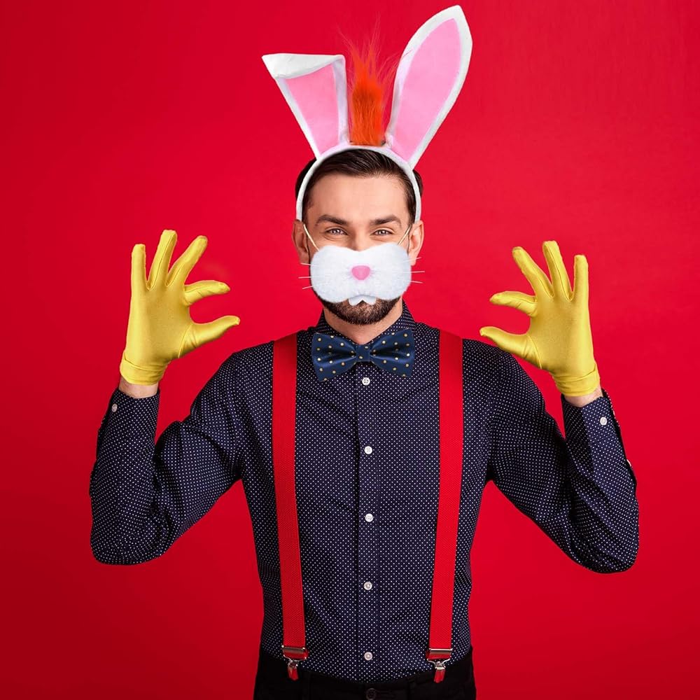 Complete Rabbit Costume: You will receive 1 bunny ear headband, 1 rabbit nose mask, 1 pair of yellow gloves, 1 red suspender and 1 bow tie. This complete set of costumes can meet your role-playing needs and can be well matched with your bunny costume.