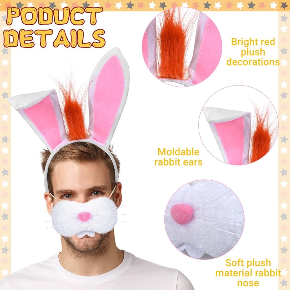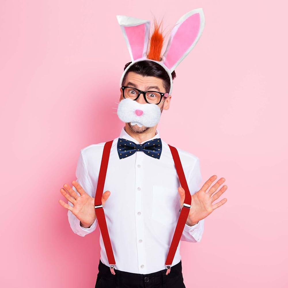 One Size to Fit Most: The size of these rabbit accessories is suitable for the vast majority of people. The bunny headband and rabbit nose mask straps are both stretchable, and the bow tie and suspender straps are equipped with adjustable buckles, allowing you to freely adjust the length for a comfortable fit.