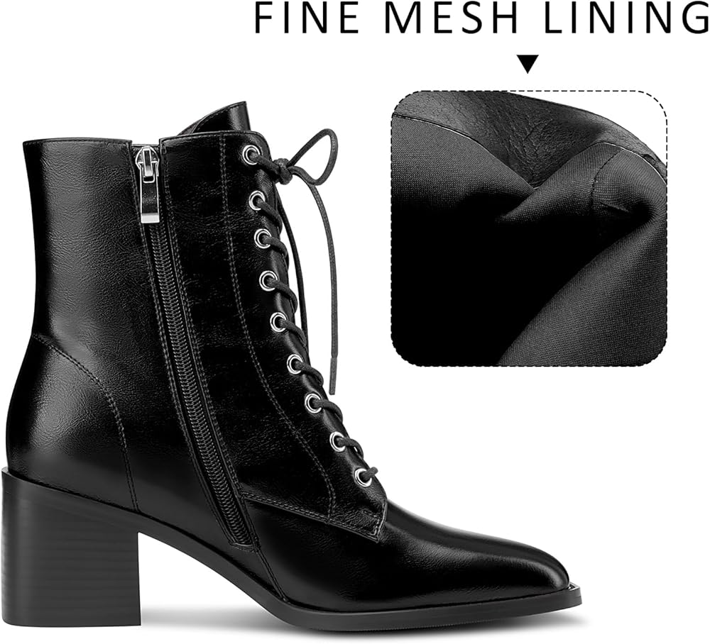 النمط والتصميم: تتميز أحذية الكاحل النسائية هذه بكعب متوسط مكتنز وتصميم برباط، مما يوفر مظهرًا أنيقًا وعصريًا.