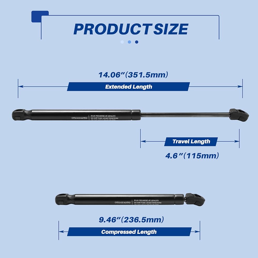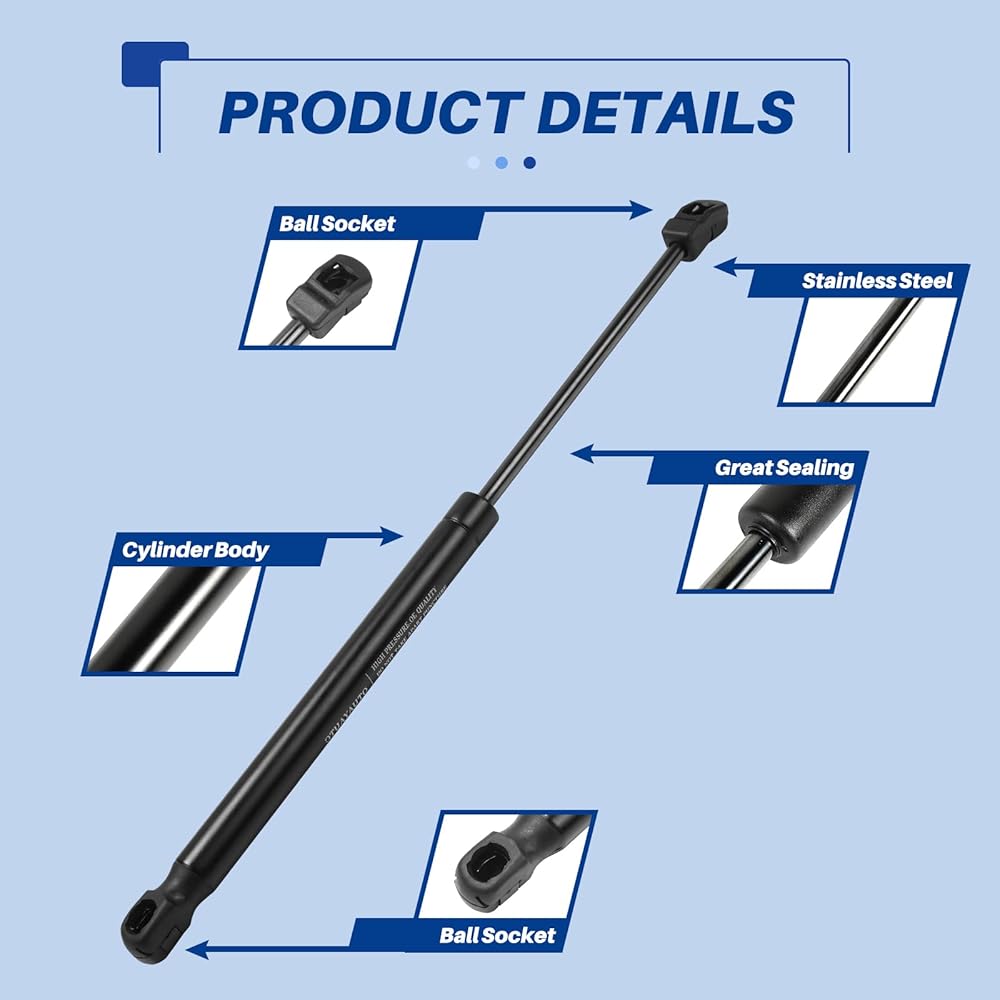 • تفاصيل المنتج: ممتصات الصدمات الزجاجية الخلفية الطول الممتد: 17.42 بوصة (من المركز إلى المركز)، الطول المضغوط: 11.17 بوصة (من المركز إلى المركز)