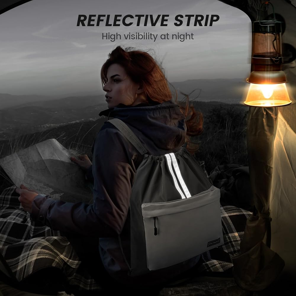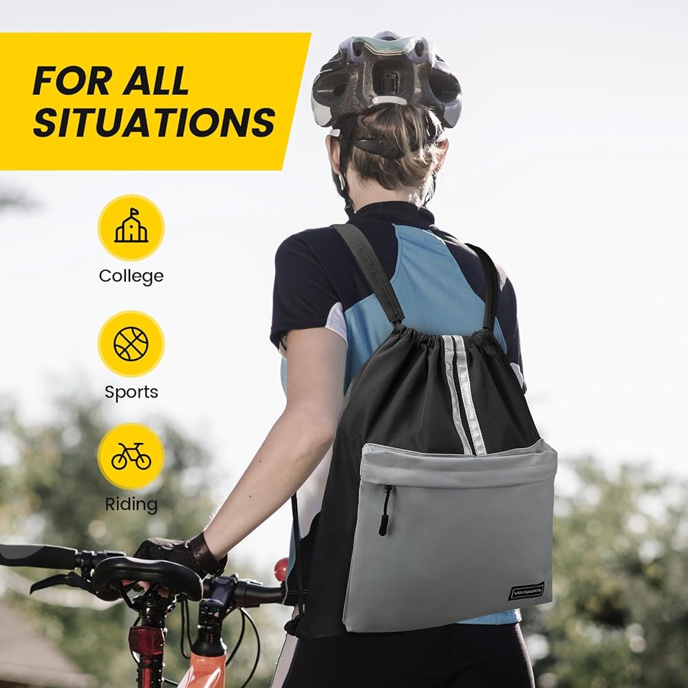 شرائط عاكسة وإغلاق برباط: تأتي حقيبة الظهر ذات الخيط مع شرائط عاكسة يمكن أن تعزز الرؤية في الظلام لتبقيك أكثر أمانًا. مع تصميم إغلاق برباط، يمكن أن تسمح لك حقيبة الرباط هذه بوضع الأشياء أو إخراجها بسهولة