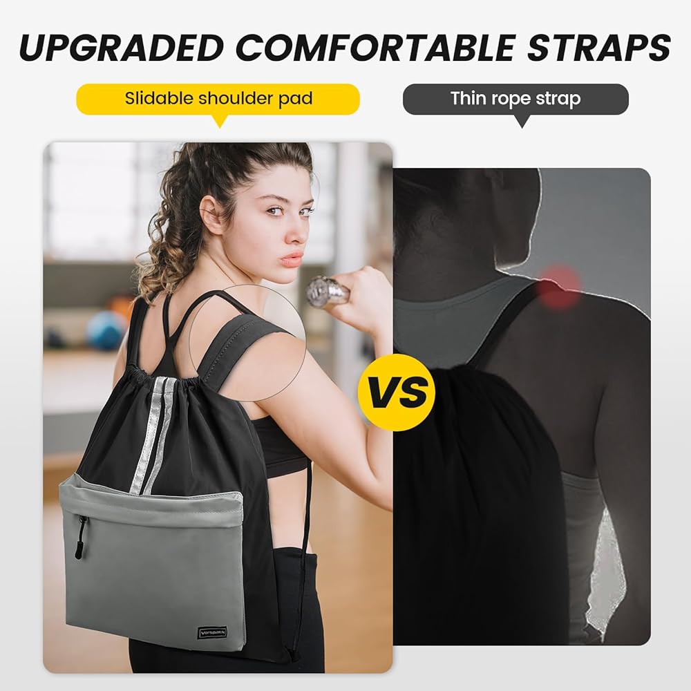 حقيبة ظهر ذات جودة عالية: تم تصميم وسادات الكتف في هذه الحقائب ذات الرباط لتوفير الراحة والدعم، بينما تسمح لك الميزة القابلة للانزلاق بتعديل الوسادات على الوضع المفضل لديك، مما يضمن أقصى قدر من الراحة والثبات. مصنوعة من البوليستر 600D، هذه الحقيبة متينة ومقاومة للماء