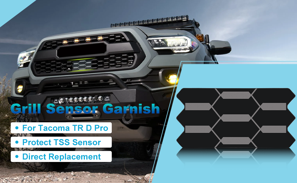 [غطاء مقبلات الشواية TSS] - يُستخدم غطاء مستشعر تاكوما لحماية المستشعر الموجود على الشواية. تأكد من أن نظام TSS الأمامي للسيارة يمكنه العمل بشكل طبيعي في الأحوال الجوية السيئة.