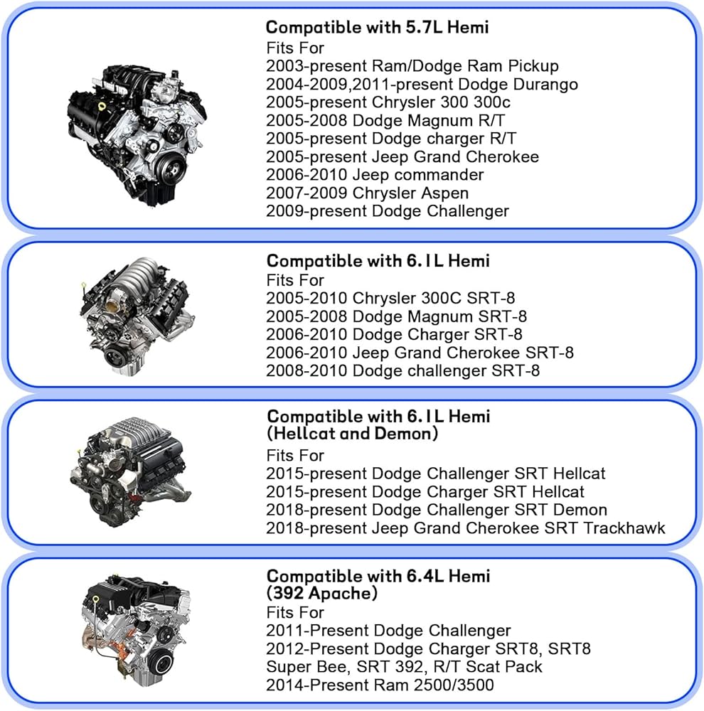 • Applications: Fit for Dodge 5.7, 6.1, 6.2, and 6.4L HEMI Engines
