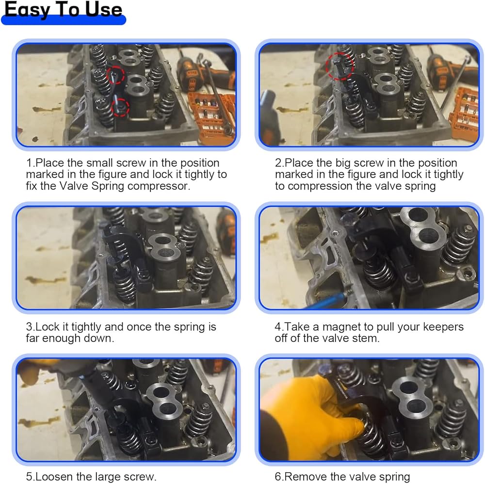 • Innovative Design: The unique lead screw and cage design efficiently compresses the spring, allowing you to have hands-free access to the valve locks with ease