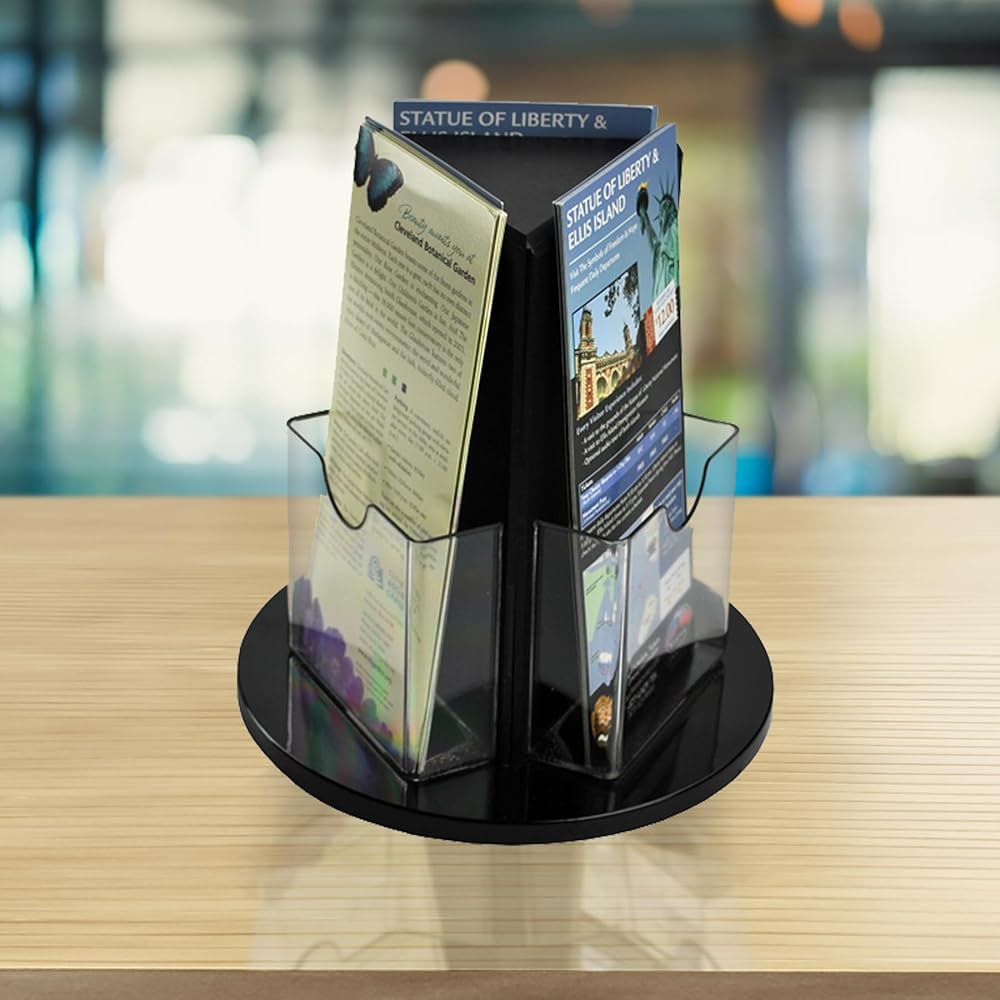يعرض عازار 223220 حامل كتيبات ثلاثي الجوانب بحجم ثلاثي الطي على قاعدة دوارة مقاس 9 بوصات، أسود