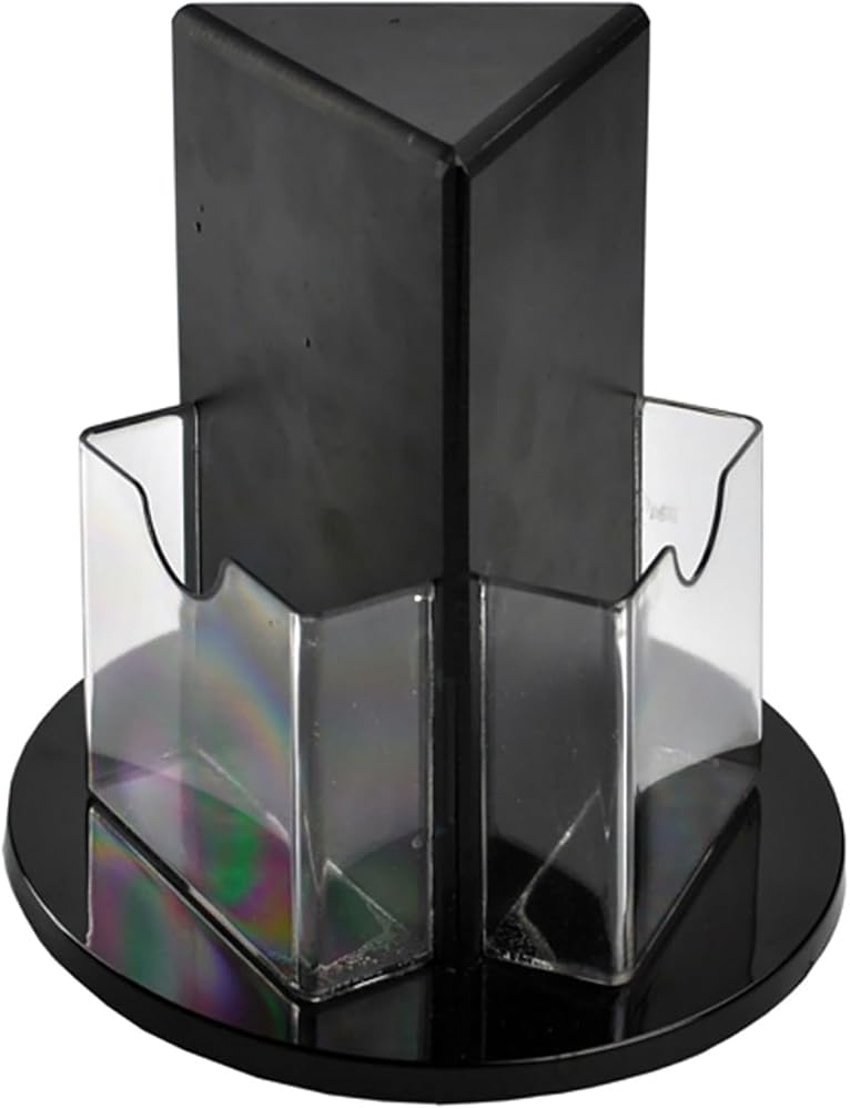 Tri-fold Size 3-Sided brochure holder revolves on a black base. Use for printed material measuring 4.125"W x 9"H.