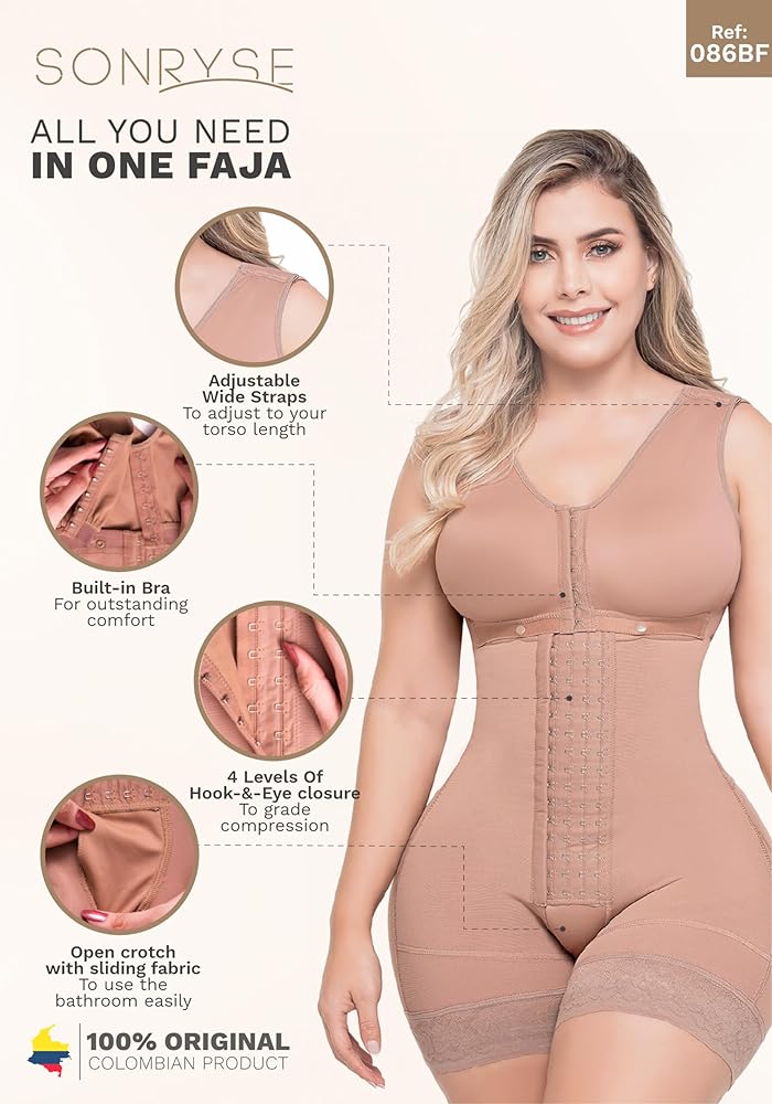 THE BEST OF COLOMBIA: Sonryse butt lifter shapewear for women gives you guaranteed satisfaction due to their superior shaping tech. We know how valuable comfort can be in Colombian girdles for slimming after liposuction or giving birth. When you buy a full body faja post liposuction SONRYSE, you're not buying just another womens shapewear bodysuit . Get 100% Colombian export quality bbl fajas. You will love an hourglass silhouette!