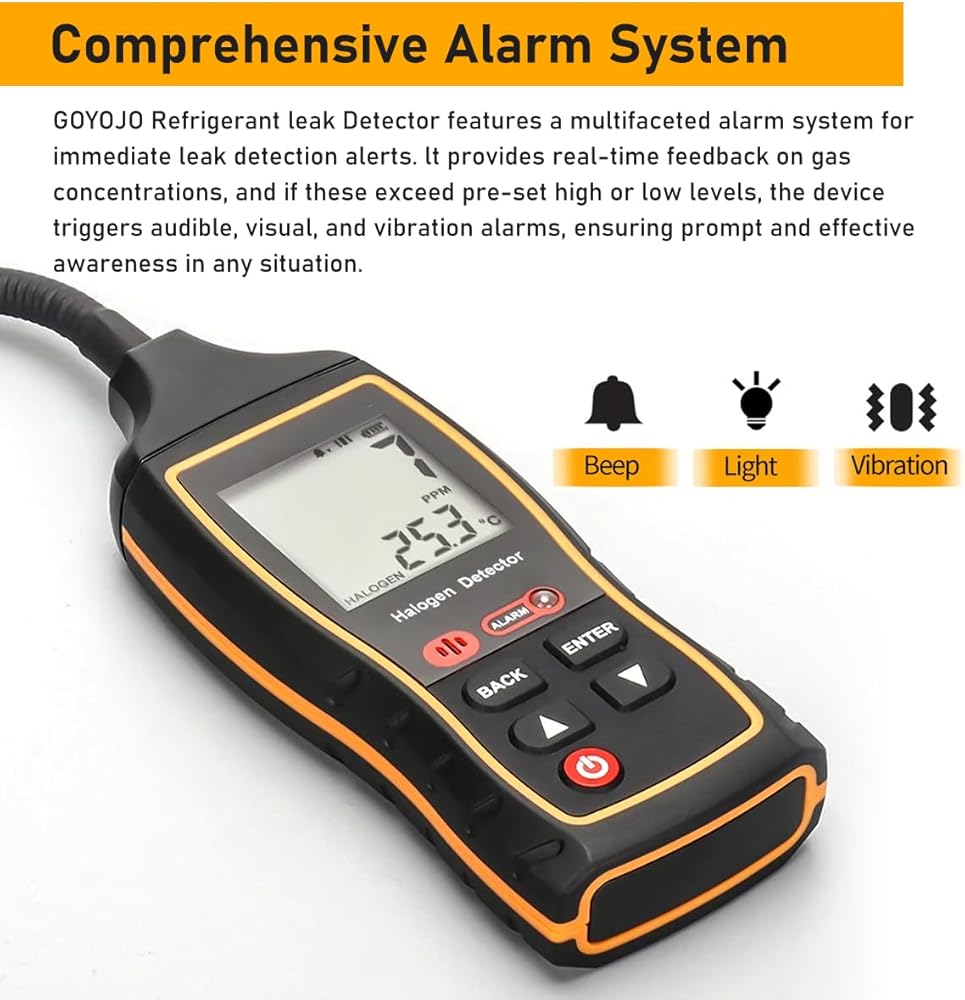 🔍 Intuitive Alerts: GOYOJO's 'freon sniffer' incorporates audible and visual alarms, ensuring you're promptly informed of any leakage issues.