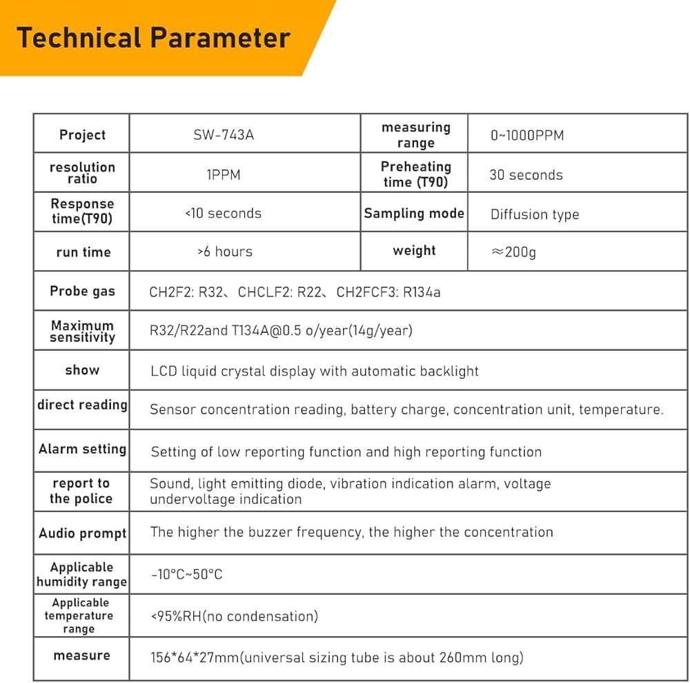 🌟 Advanced Detection: Expertly identifies R22, R32, and R134a within a 0-1000 PPM range, showcasing our top-tier precision in 'refrigerant leak detection'.