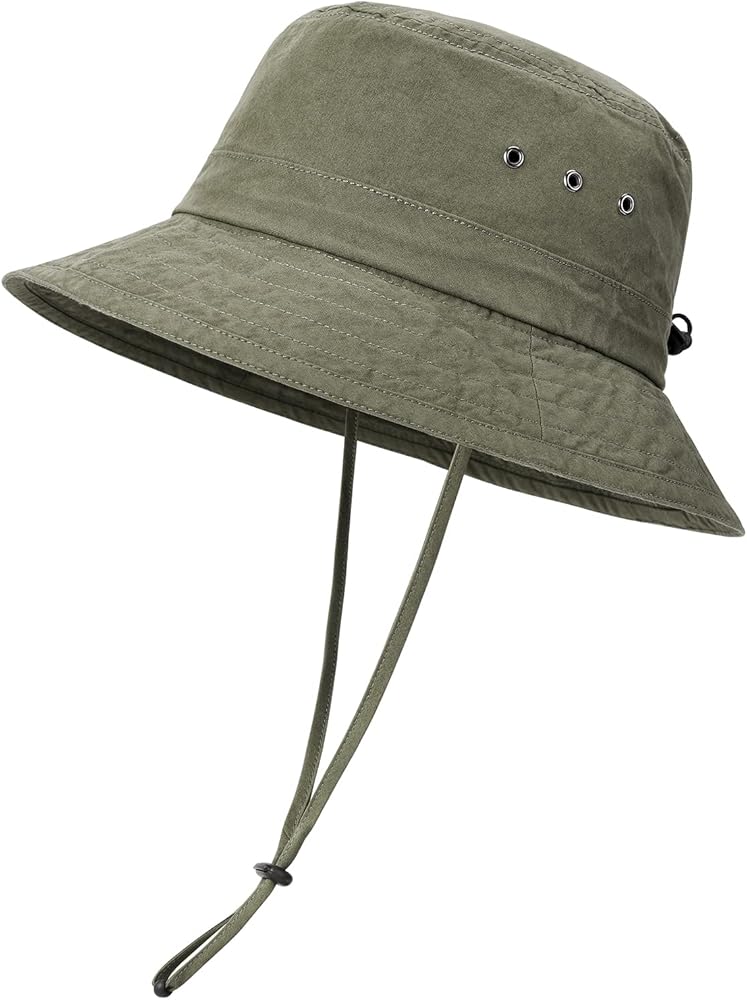 قبعة دلو من القطن المغسول للرجال من VOBOOM، قبعة Boonie قابلة للتعبئة للحماية من الشمس (أخضر جيشي)