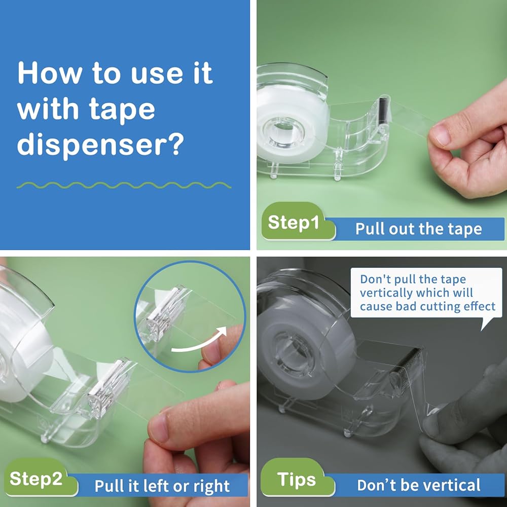 - حجم مناسب: تتضمن حزمة لفات إعادة تعبئة موزع الشريط 4 لفات من الشريط الشفاف مقاس 0.7 بوصة × 21.9 ياردة لكل لفة.