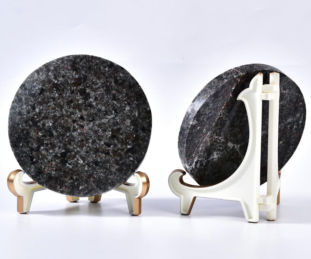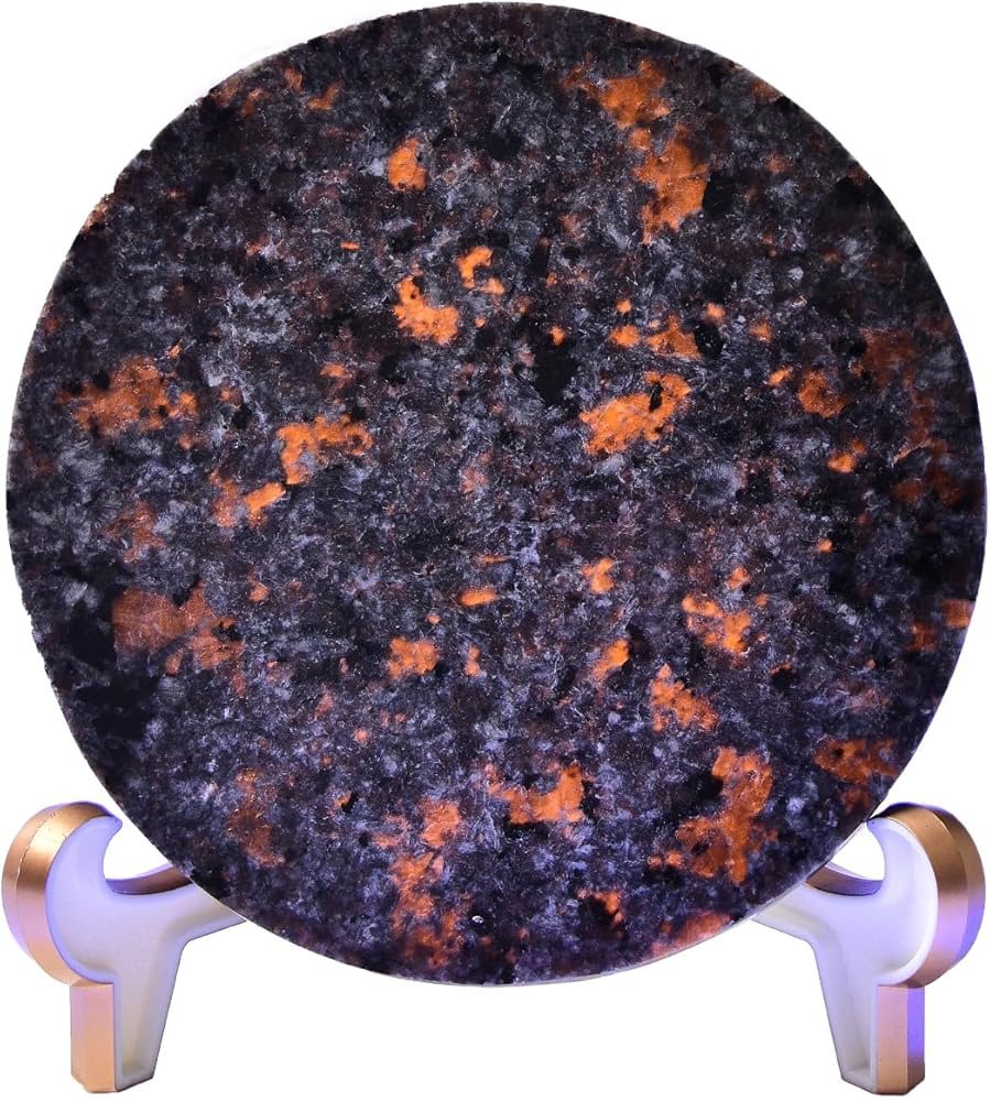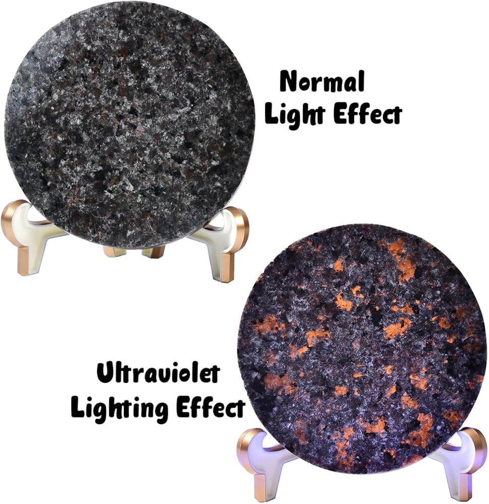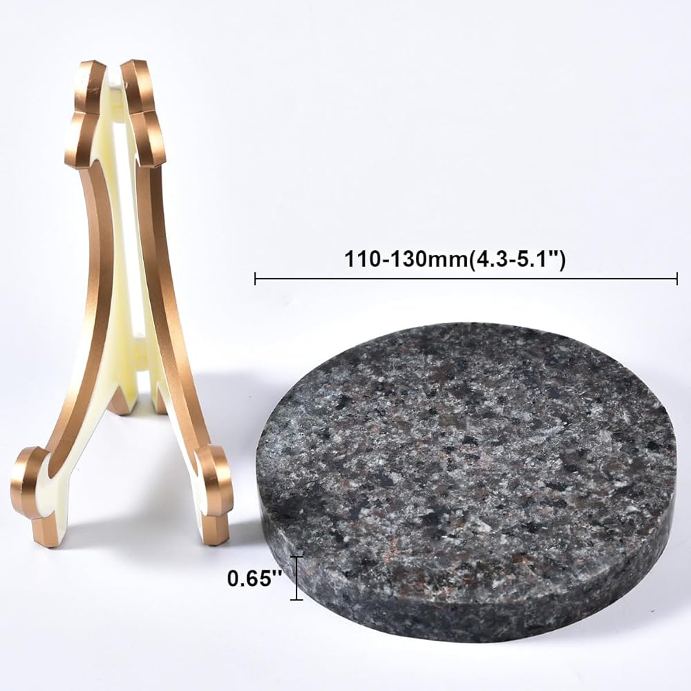الحجم: قطر لوحة الكريستال العلاجية حوالي 110-130 ملم (4.3-5.1 بوصة)، السمك حوالي 0.65 بوصة، مع حامل عرض كريستال.