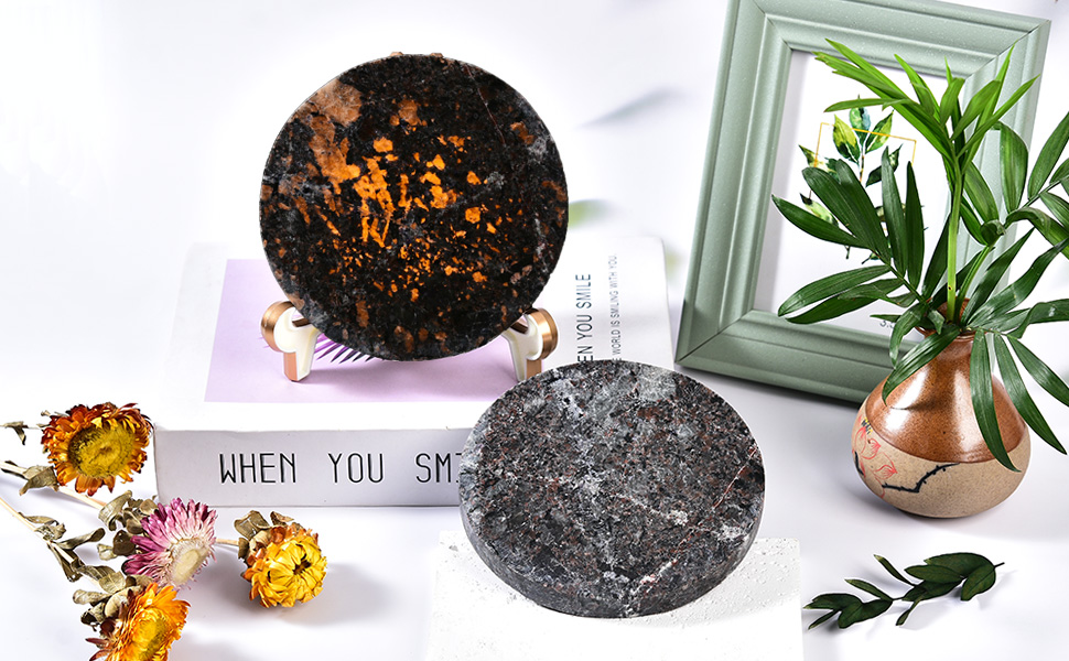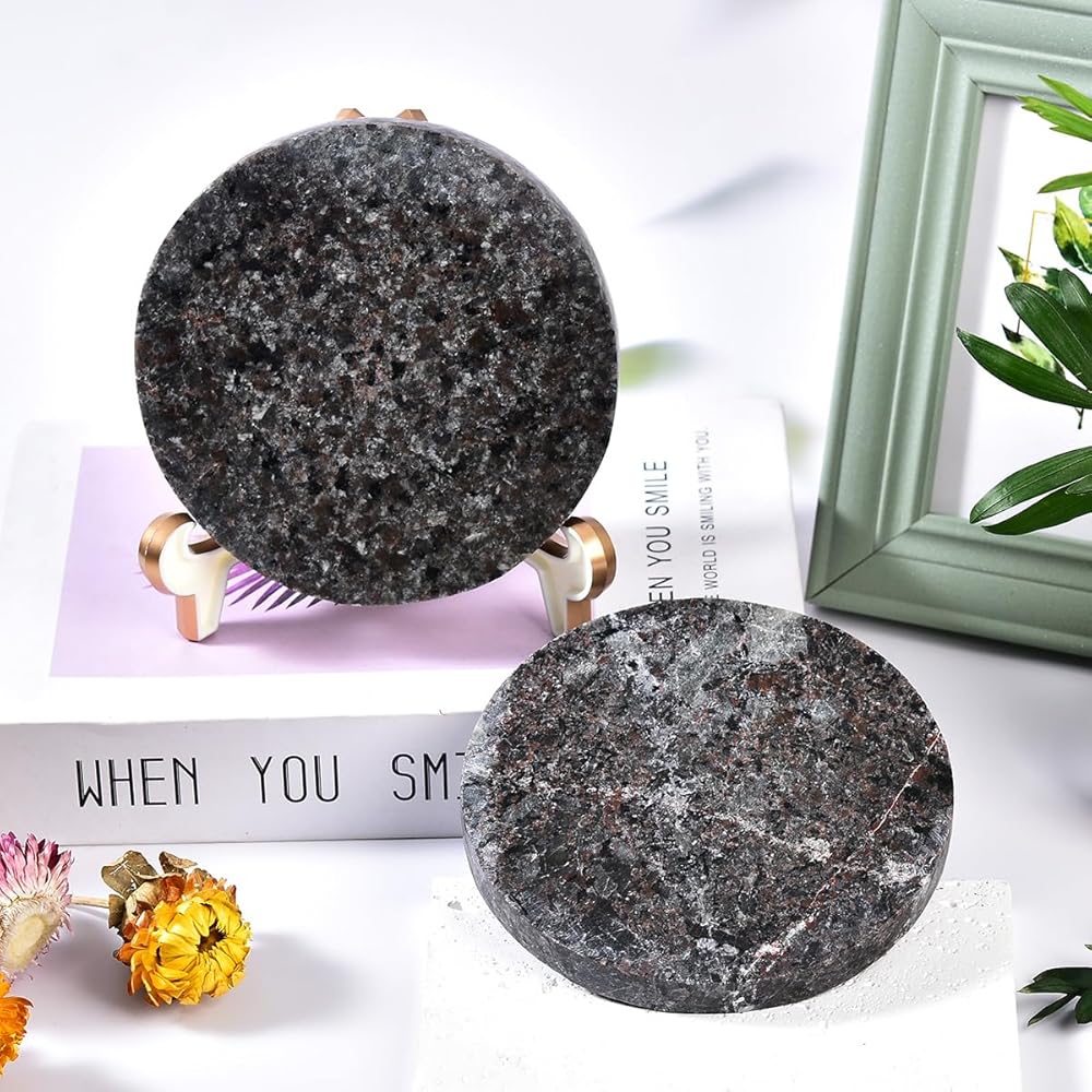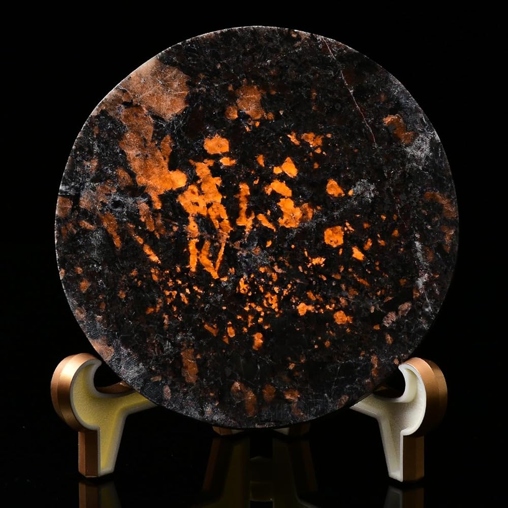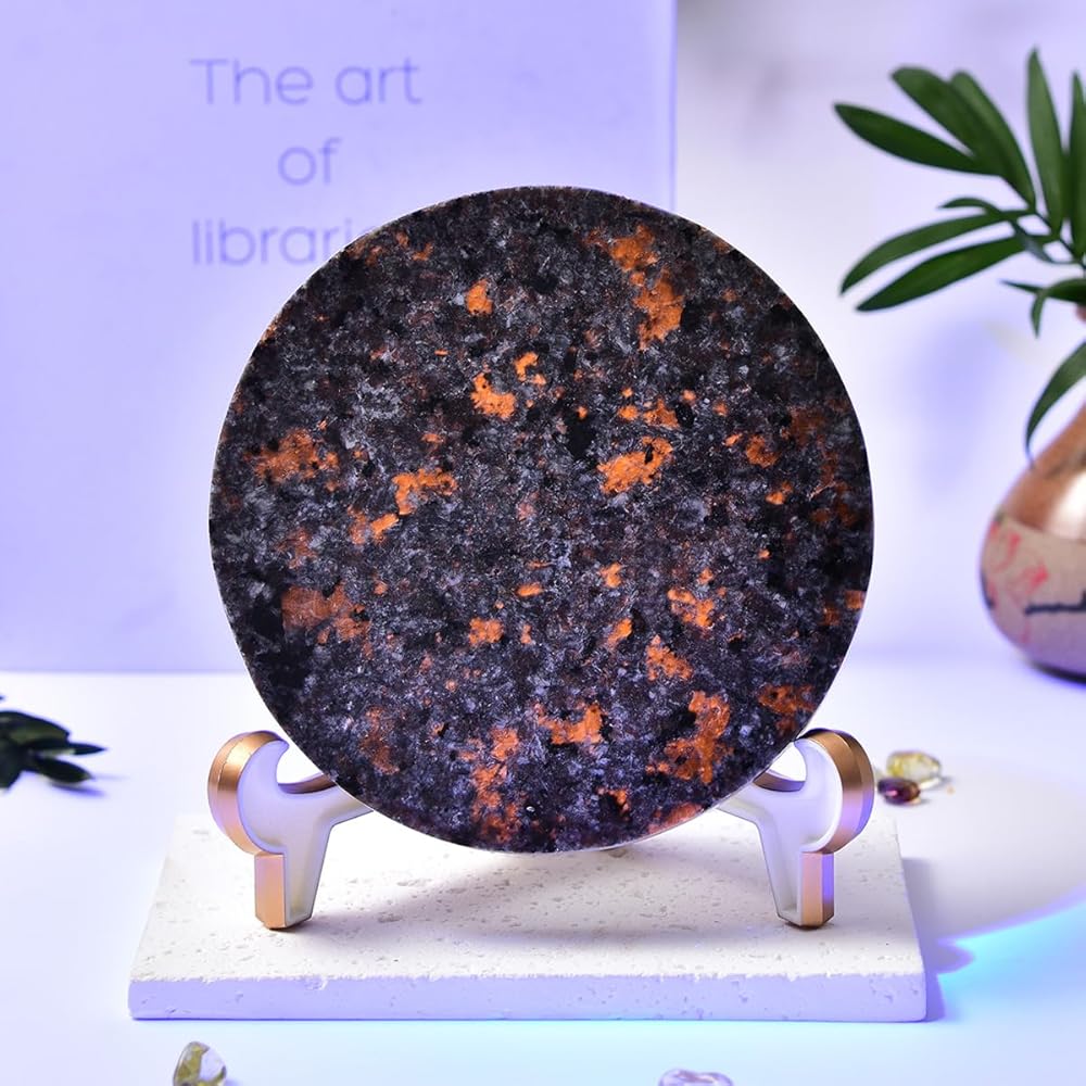 الحجم: قطر لوحة الكريستال العلاجية حوالي 110-130 ملم (4.3-5.1 بوصة)، السمك حوالي 0.65 بوصة، مع حامل عرض كريستال.