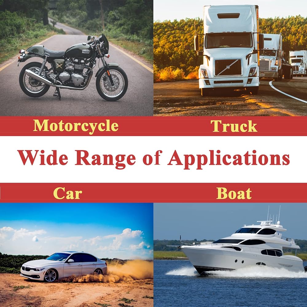 مجموعة واسعة من التطبيقات: تستخدم للدراجات النارية، سكوتر، سيارة، شاحنة، دراجة رباعية، ترايك، كارافان، البحرية، جت سكي، القوارب وغيرها من التوصيلات السلكية.