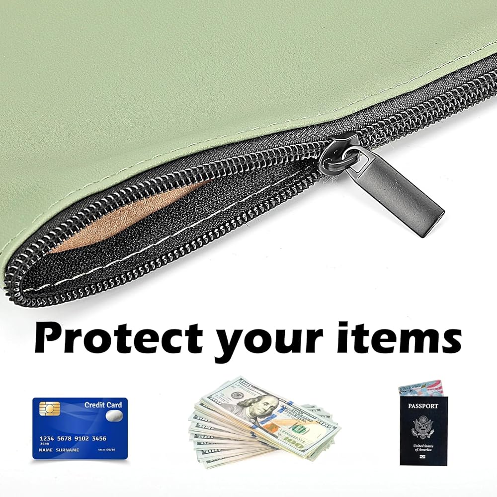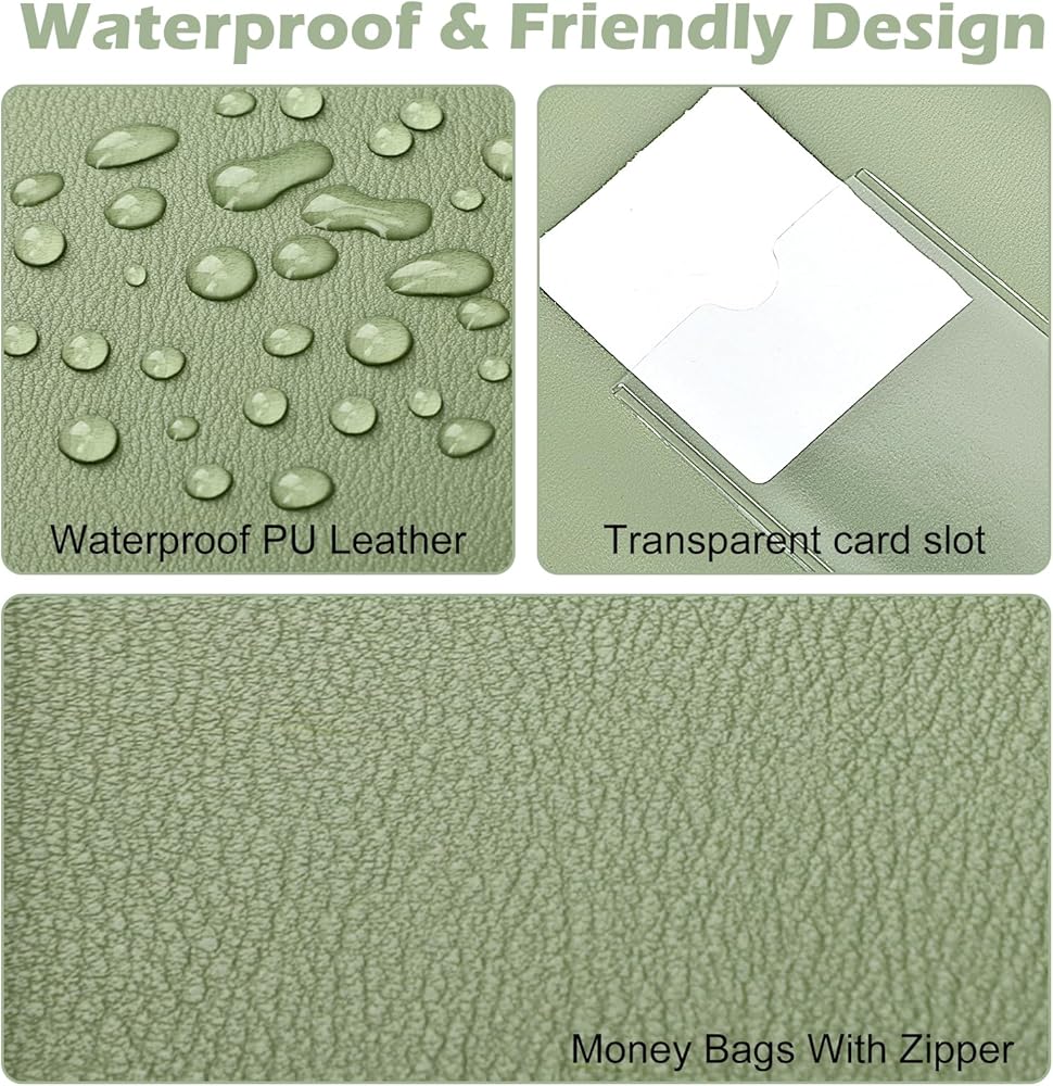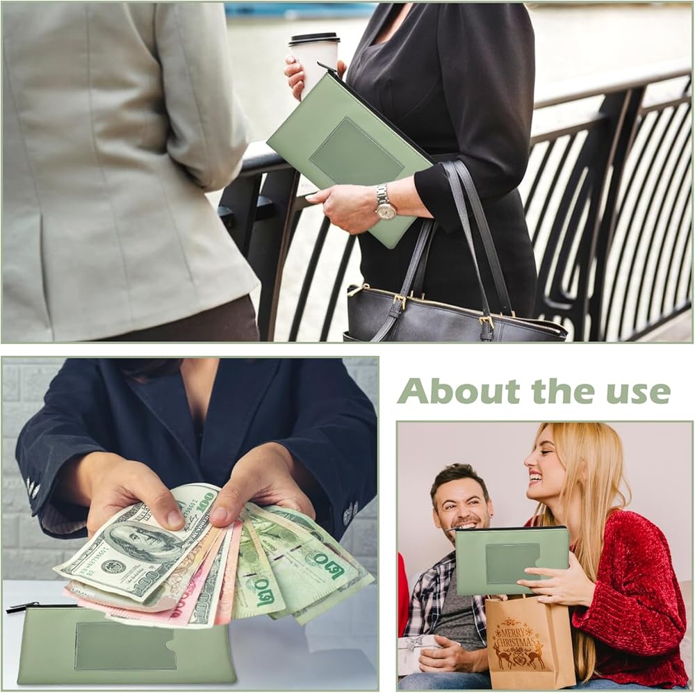 2. Product size: A set of leather cash bags measures about 11×6 inches, and all 6 packs are sage green. You can take your wallet with zipper to work, shopping or business trips. The wallet is portable and easy to fold, and you can use it anytime, anywhere.