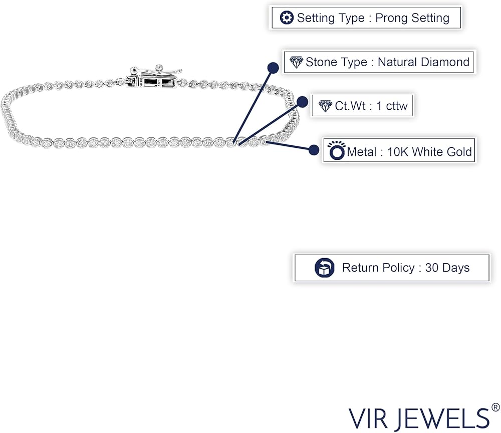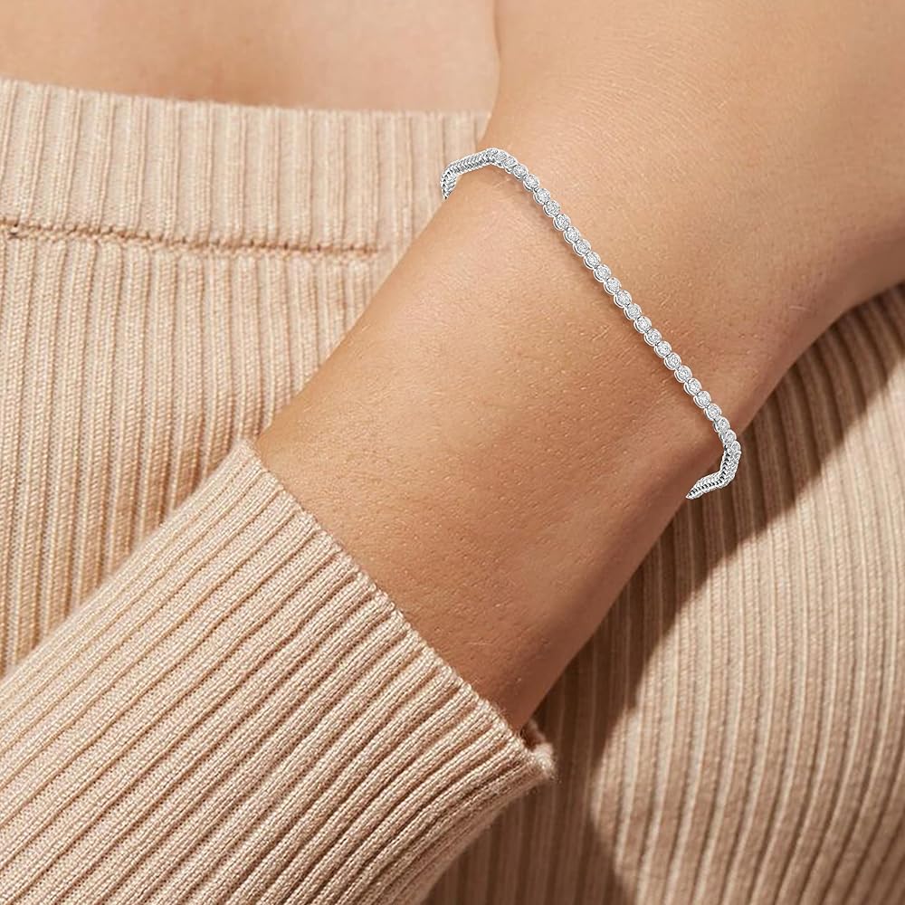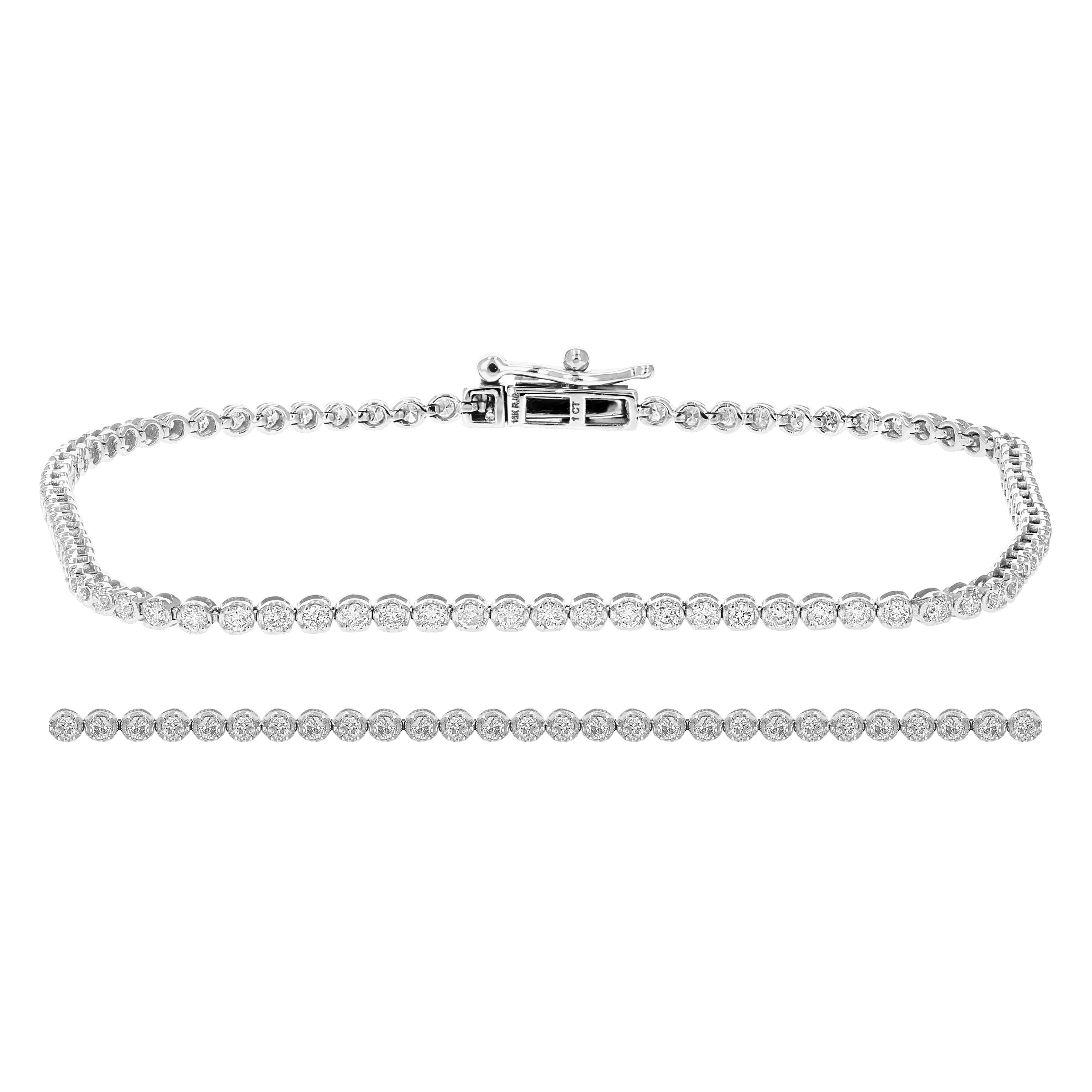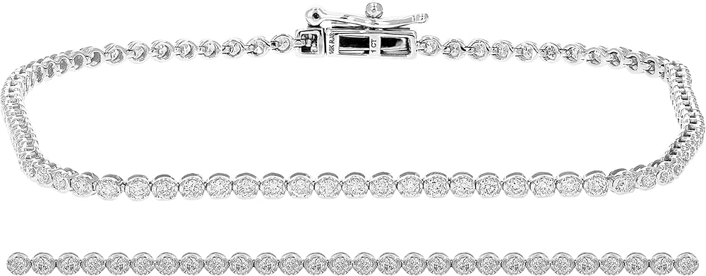 1 قيراط الماس تنس سوار 10K الذهب الأبيض جولة الشق مجموعة 7 بوصة