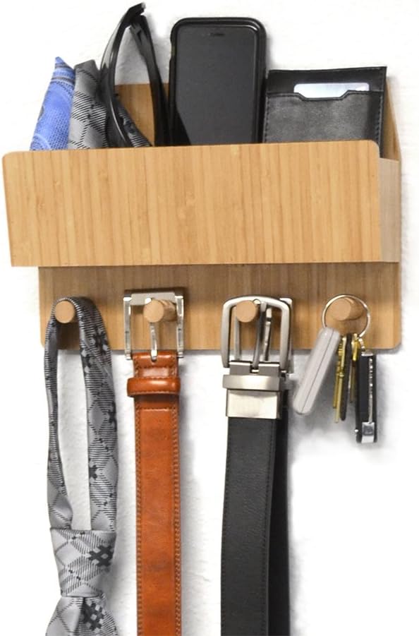 قم بتزيين المدخل الخاص بك باستخدام موفر المساحة القابل للتركيب. قم بتعليق أي شيء بدءًا من المفاتيح وحتى السترة الخفيفة من أوتاد الخيزران المتينة. مع إمكانيات لا حصر لها، سيتناسب حامل الحائط هذا بشكل جيد في أي منطقة في منزلك أو مكتبك.