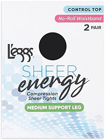 Graduated compression sheer tights by L'eggs Sheer Energy in a two pair package. No-roll waistband provides a flattering, comfortable fit.