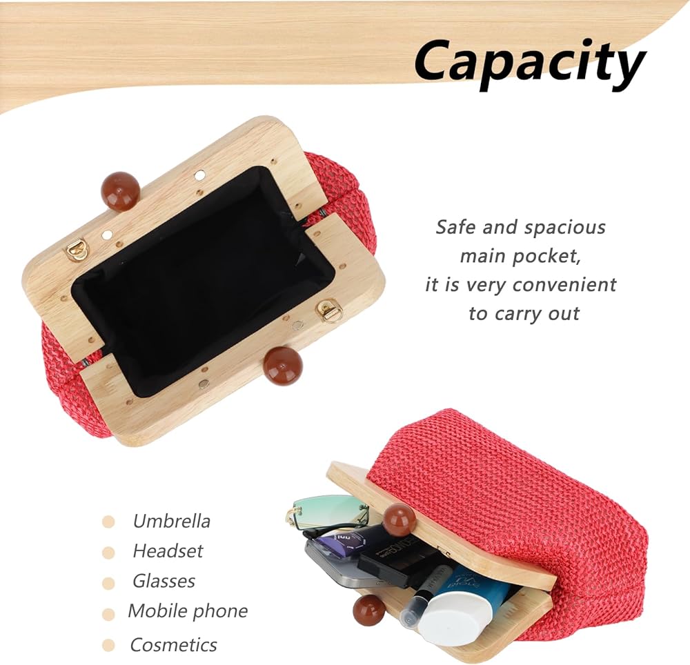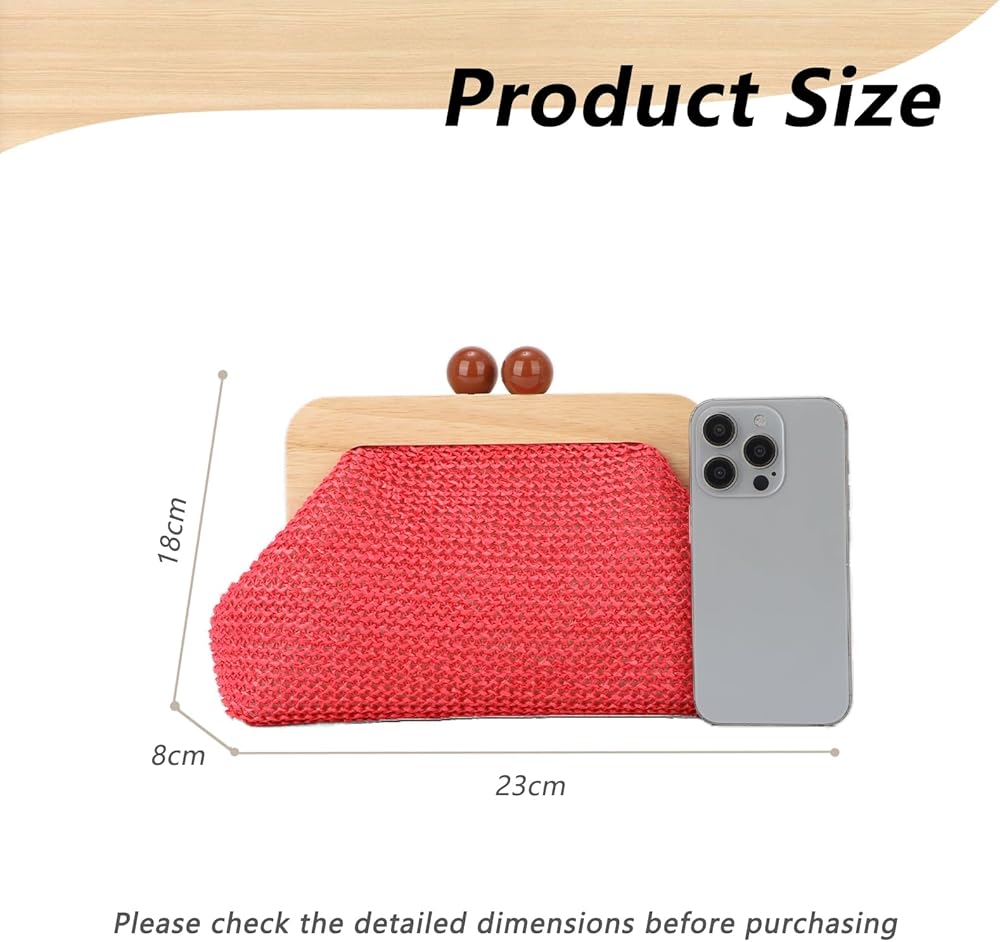 【سعة كافية وخفيفة الوزن】يبلغ حجم هذه الحقيبة القماشية المنسوجة حوالي 9.05 × 3.15 × 7.08 بوصة، وهي تتمتع بسعة كافية لوضع المكياج وملمع الشفاه والهاتف والأموال وما إلى ذلك. حقيبة كروس كبيرة بما يكفي لتناسب احتياجاتك الأساسية. ويغلق الجزء العلوي الخشبي بشكل آمن حتى لا تفقد أي شيء.