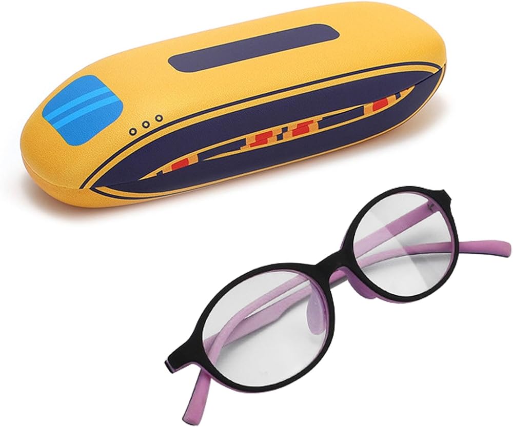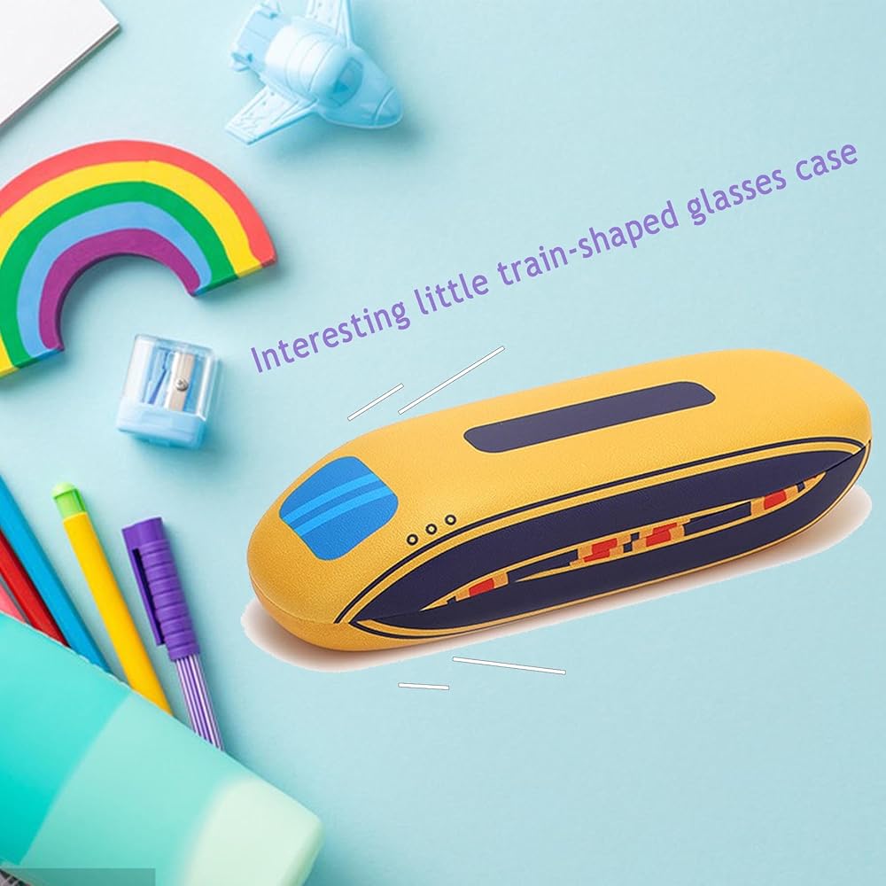 The case features an adorable cartoon train shape, adding a cute element to the glasses case.
