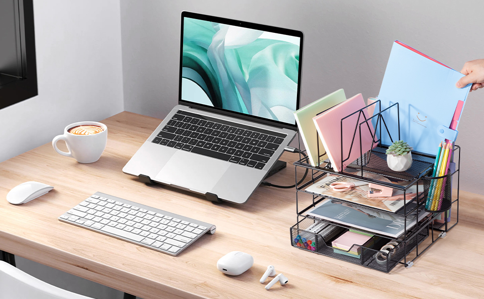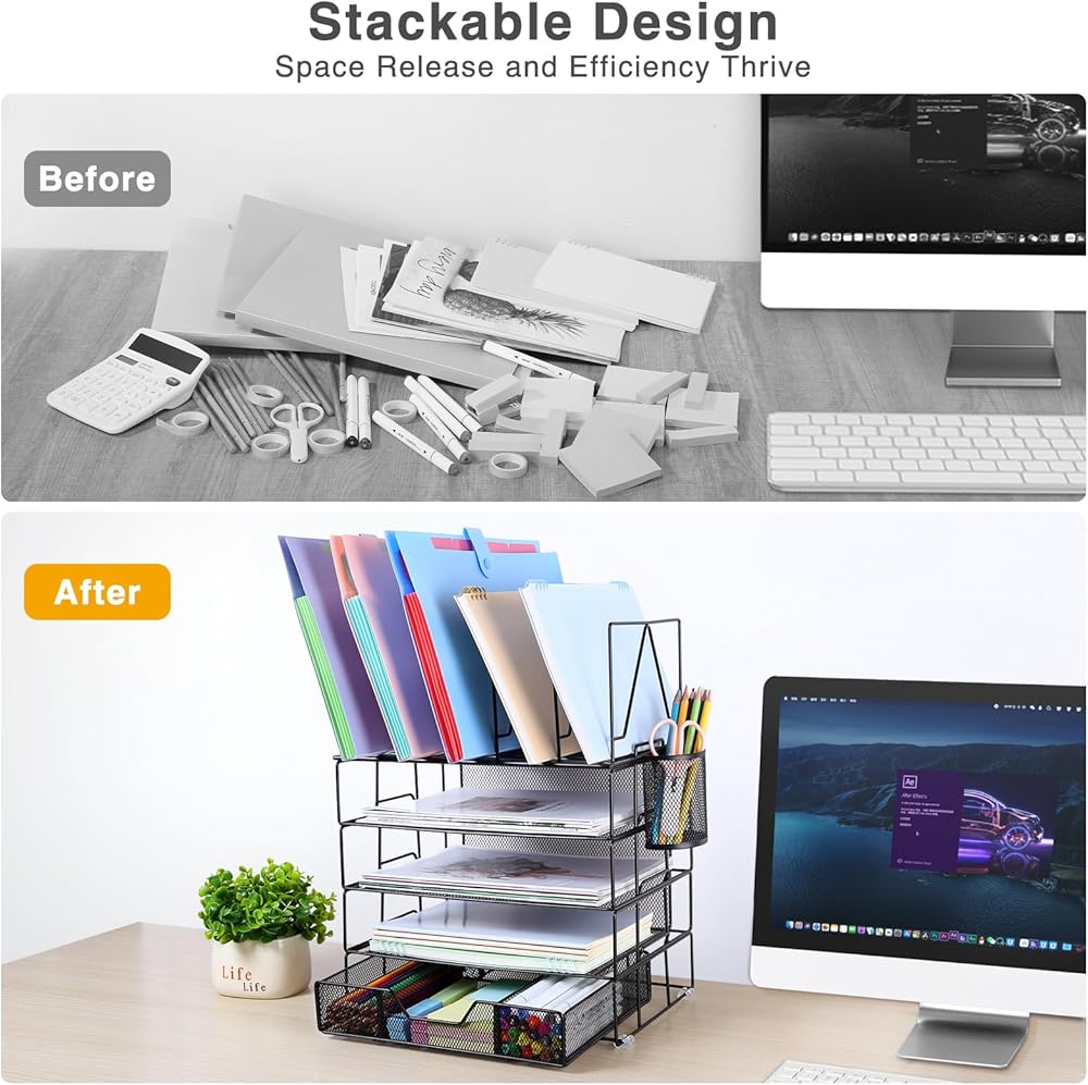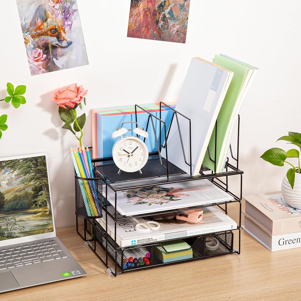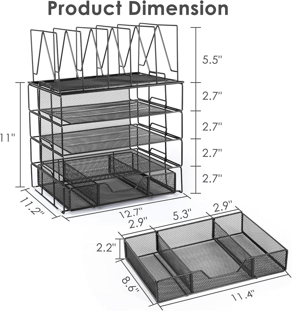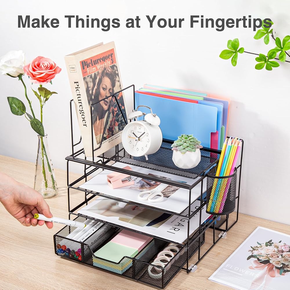 ✿ منظم مكتب من 5 طبقات✿ - تعرض منظمات وإكسسوارات المكتب المطورة القابلة للفصل ثلاث صواني وثلاثة فرز للملفات وحامل أقلام ودرج منزلق وأربع وسادات سيليكون غير قابلة للانزلاق. يضمن هذا الترتيب المحدد جيدًا للعناصر الوصول بسهولة إلى اللوازم المكتبية.