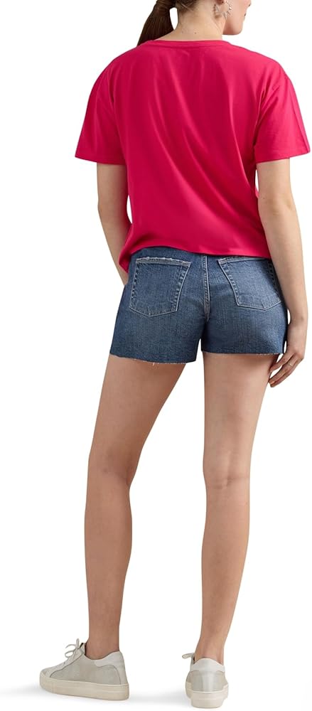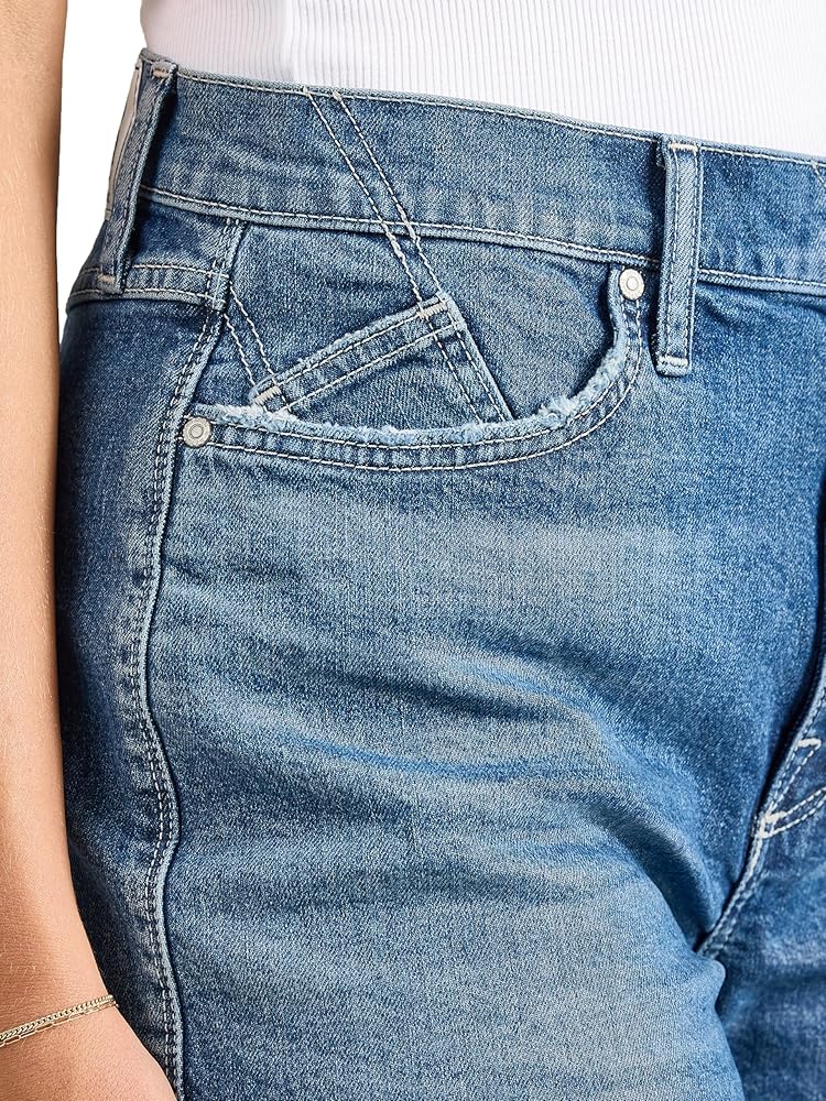 STRETCH DENIM. Made with a blend of US cotton and a touch of stretch, you'll actually want to wear these high-rise shorts all day or all night long.