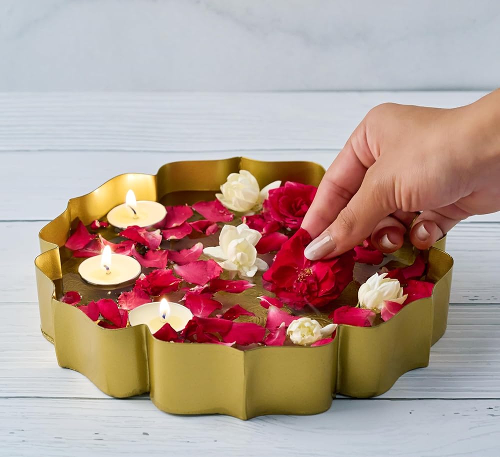 التميز المصنوع يدويًا | سهل الصيانة: تم تصنيعه بدقة على يد حرفيين مهرة، كل وعاء Urli ينضح بالحرفية والاهتمام بالتفاصيل، ويسهل الحفاظ عليه فقط افرك هذه الأوعية الذهبية بمزيج من الليمون والملح أو التمر الهندي أو طلاء معدني لامع جاهز مثل النحاس وطلاء النحاس.