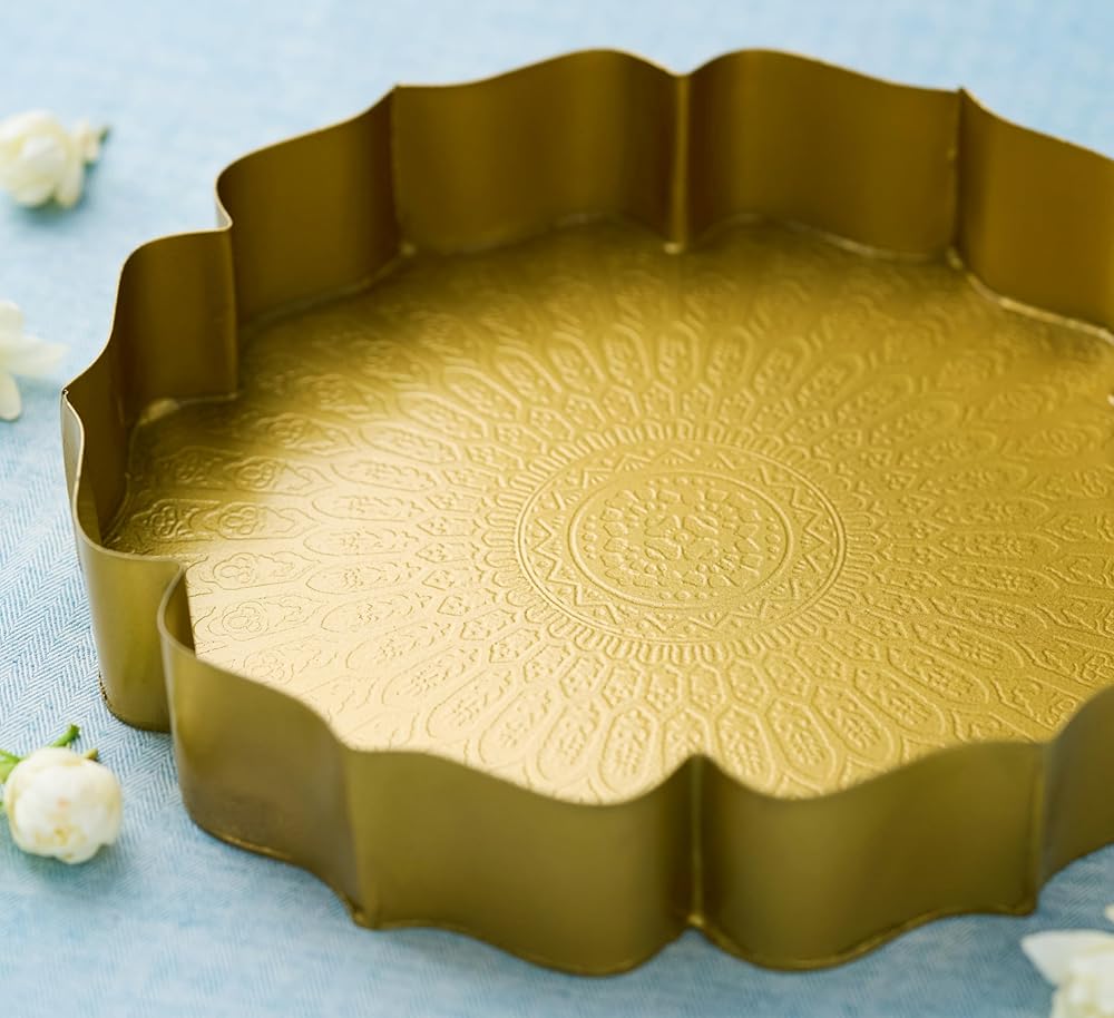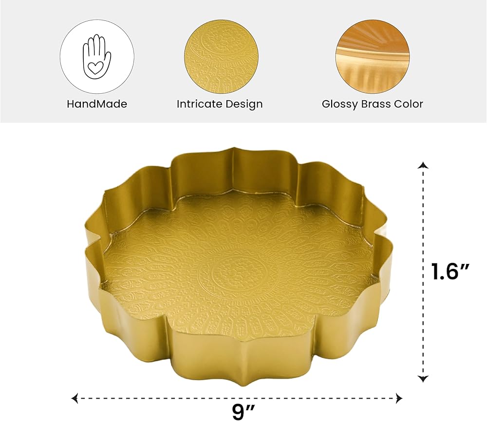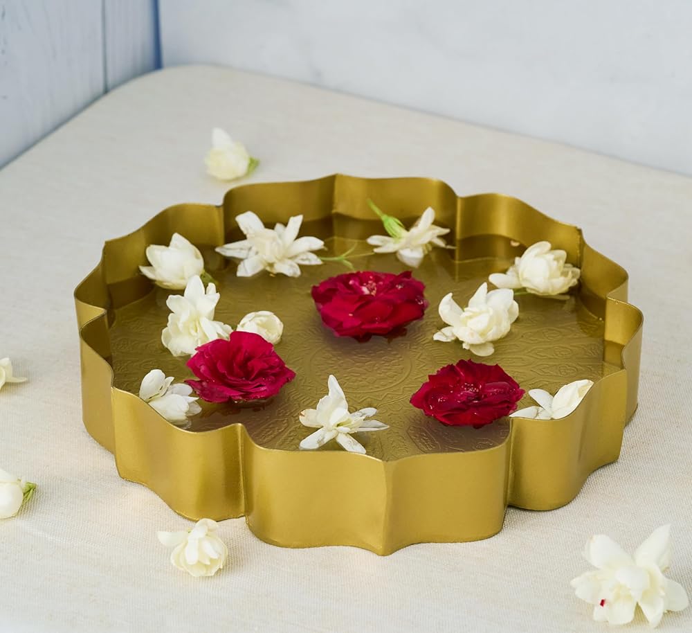 متعددة الأغراض: عزز الديكور الخاص بك مع مجموعة Urli Bowl الخاصة بنا، والتي تتميز بأحجام متعددة لعرض متماسك ومذهل في الإعدادات الهندية. يمكنك تقديم هدية Urli الجميلة هذه لأصدقائك وأقاربك وجيرانك في المناسبات الدينية، افتتاح منزل/منزل جديد، كيرتان، هدية ديوالي العودة، موندان، هدايا العودة لهدايا العودة لمنزل جديد هندي، بوجا، بيبي دش، نافراتري وغيرها. يمكن استخدام هذا الوعاء الذهبي أيضًا في المطبخ وغرف الضيوف. وعاء مثالي لتزيين ديوالي.