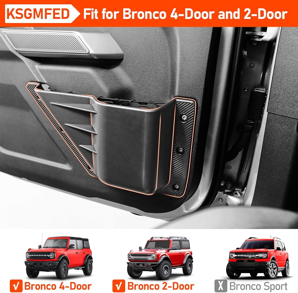 🚗مصممة خصيصًا لسيارة Ford Bronco الخاصة بك: جيوب تخزين الأبواب الأمامية مصممة لتناسب موديلات 2021 2022 2023 Ford Bronco 2/4 Door، مما يضمن ملاءمة مثالية ومساحة تخزين قصوى. (غير متوافق مع Bronco Sport)