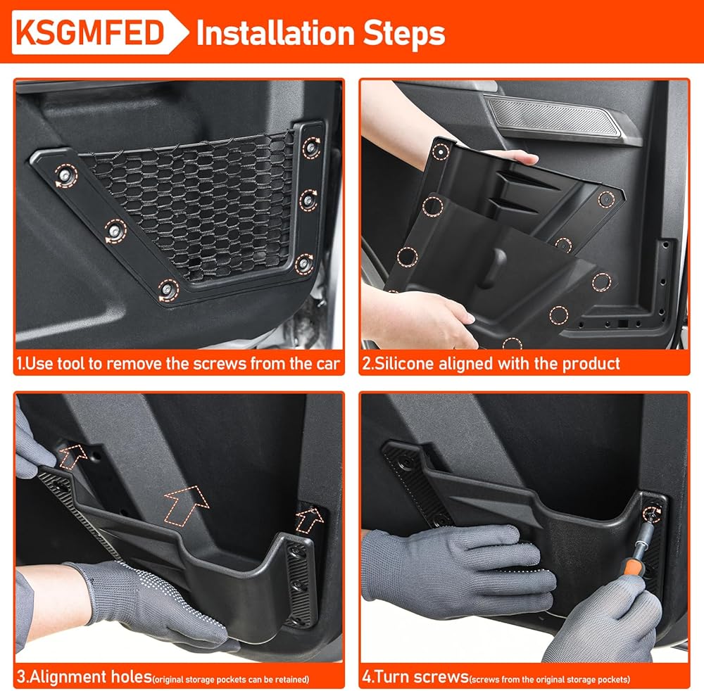 🚗لا توجد فتحات ثقب: يستخدم صندوق منظم الباب الخاص بنا مسامير شبكة الباب الأصلية، مما يلغي الحاجة إلى الحفر ويضمن تركيبًا ثابتًا وثابتًا.