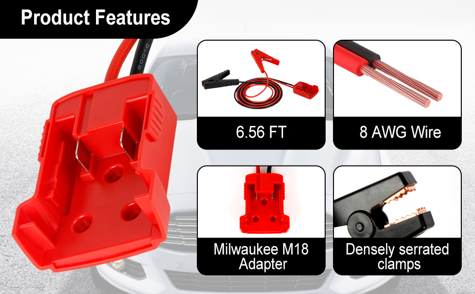 الطراز المطبق: محول بطارية متوافق مع بطارية Milwaukee M18 18V، نطاق الجهد 12-24V، يستخدم على نطاق واسع في السيارات متوسطة الحجم والشاحنات الخفيفة والمركبات الخفيفة