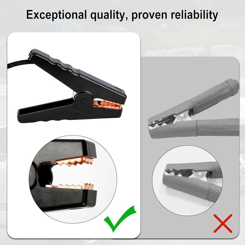 مواد عالية الجودة: محول بطارية السيارة مصنوع من بلاستيك ABS قوي، مع الثبات، ومقاومة الحرارة، ومقاومة الصدمات، وخصائص مقاومة الجهد الكهربي، مع قلب نحاسي نقي عالي الجودة، موصل كهربائي ممتاز، الكابل مزود بمادة عازلة PVC مقاومة للحريق، تشاك هو مادة معزولة بالكامل، لمنع الشرر، وأداء موثوق، ودائم