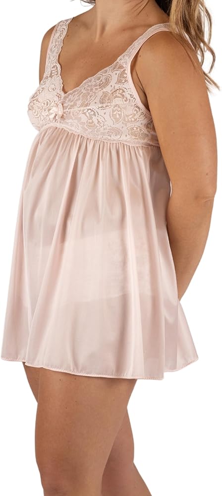 Enjoy the sweetest of sweet dreams in our new nylon and lace babydoll. To create a light and floaty fit, we've made it from our 100% nylon Satintrique fabric which is imbued with a beautiful pearlescent shimmer. The cups and straps are crafted from soft, scallop-edged stretch lace, and it's finished with an elegant bow and pearl detail. Cute, comfy, and with a dash of vintage flair, this lingerie babydoll is even better when paired with the matching Lace Cheeky Panty.