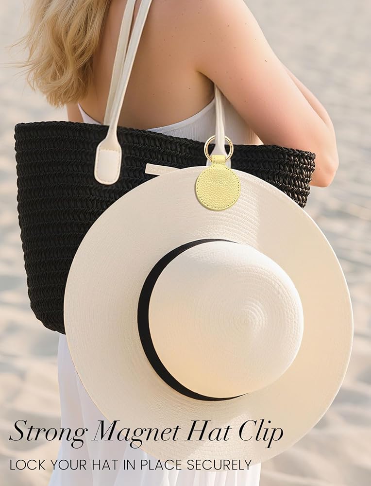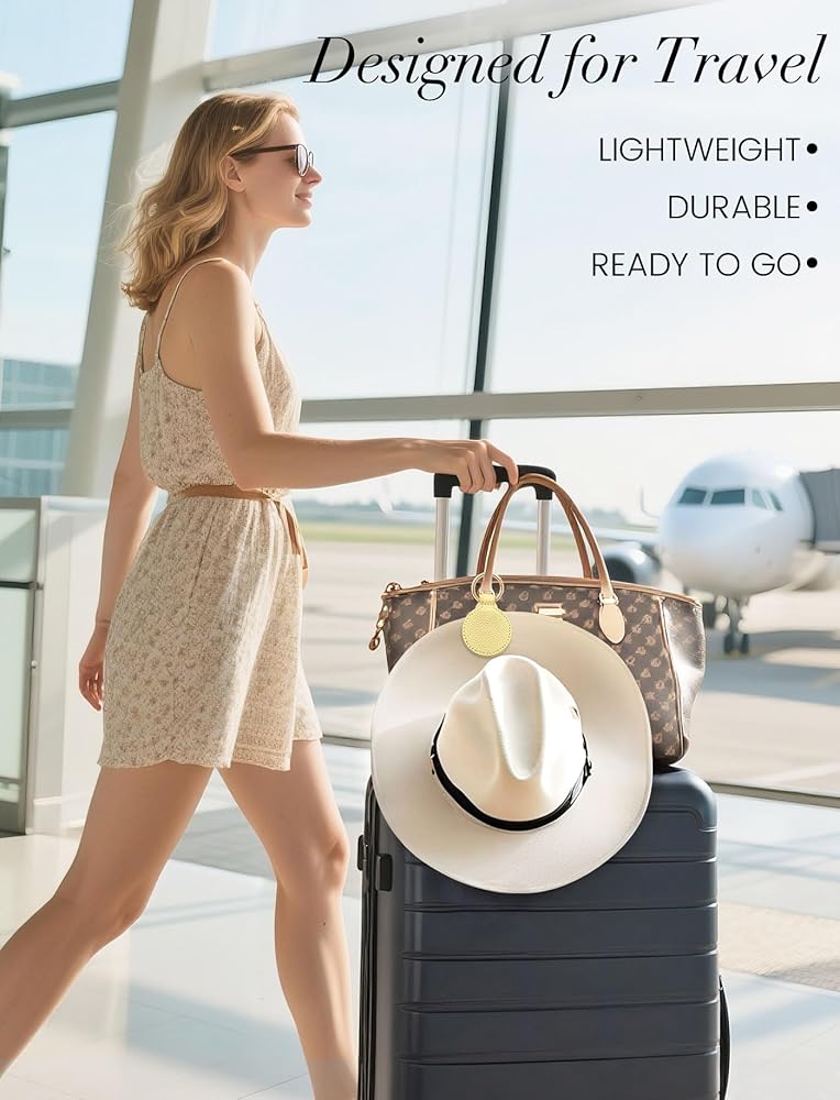 【مشبك قبعة مغناطيسي للسفر】 - تمت ترقية 2024 بمشبك قبعة مغناطيسي، والاستخدام الخارجي للجلد عالي الجودة ومغناطيس جنسي قوي N52 مدمج، بحيث يتمتع السفر مع مشبك القبعة بمظهر أنيق وقوة شفط قوية. يمكن أن تساعدك على تعليق قبعتك بإحكام فوق أي من حقيبتك، ولم يعد هناك ما يدعو للقلق بشأن عدم قدرة حقيبتك على وضع القبعة، ولا تحتاج إلى طي القبعة لتسبب تشوهها.