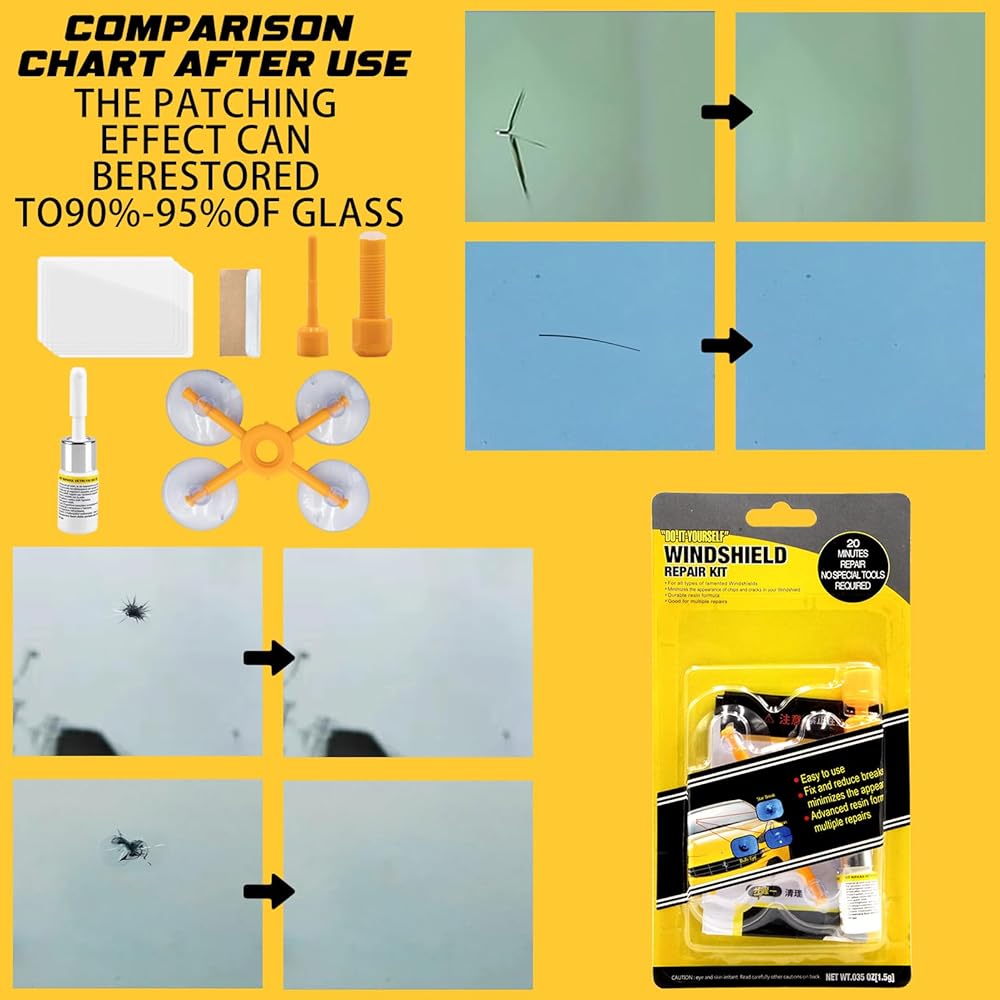 Windshield Repair Kit: Made of use advanced resin formula, no mixing required, windshield repair kit quickly and efficiently repairs small damage in 20-30 minutes