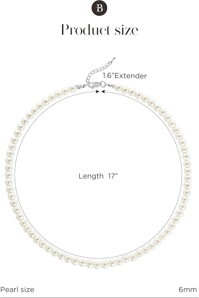 الحجم: الطول: 17 بوصة + 1.6 بوصة سلسلة تمديد؛ مقاس كل لؤلؤة: 6 ملم.