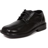 A comfortable dress shoe that kids love to wear? It's possible, with our Zander lace-up oxford. The look is timeless: a classic almond toe shape and a smooth, simulated leather upper. Added details give it a playful edge - an accent pull tab, contrast stitching and a crepe-like TPR outsole. For your child's comfort, we added a cushioned EVA insole with memory foam and laces that allow for a flexible and secure fit. It's perfect for school uniforms, holidays and formal events.