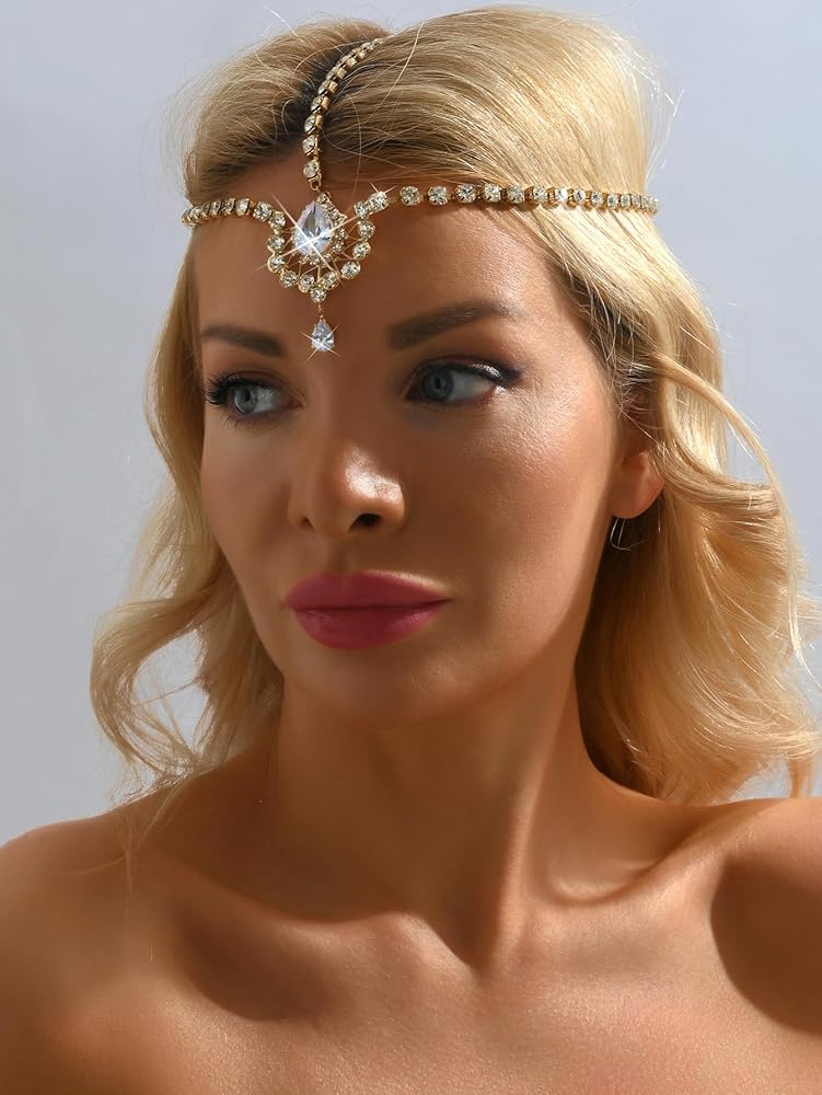 ✿ سلسلة رأس أنيقة على شكل دمعة من حجر الراين، مجوهرات رائعة لحفل زفافك والمناسبات المهمة والملابس اليومية.