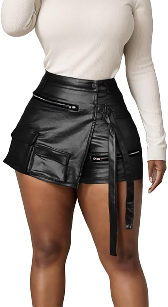 - شورت معدني للنساء مع تنورة كارجو أنيقة فريدة من نوعها بحاشية غير متماثلة تجمع بين التنانير والسراويل القصيرة
