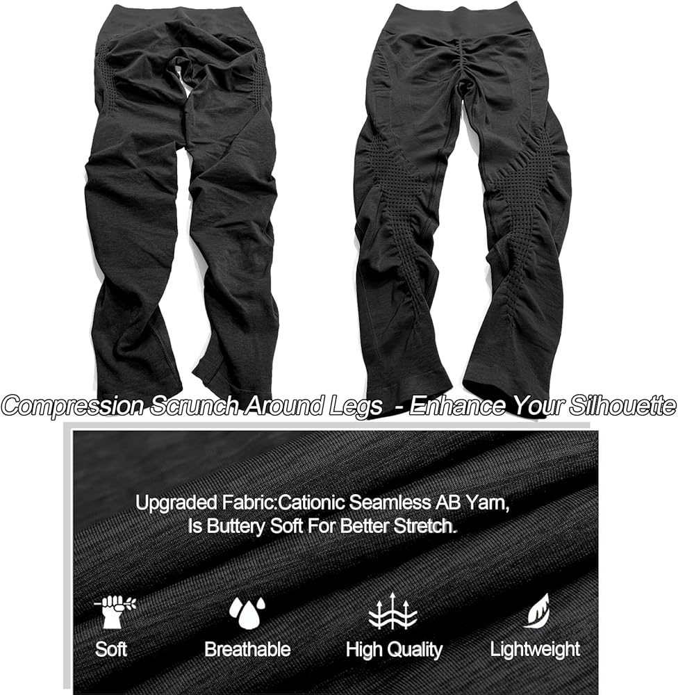 【قماش ماص للعرق وجيد التهوية】مصنوع من البوليستر الكاتيوني، بنطال ضيق متماسك ناعم بدون خياطة، خفيف الوزن، قابل للتمدد في 4 اتجاهات ولا يمكن رؤيته من خلاله، بدون حشو.