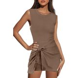 Nirovien Womens Athletic Romper Dress Tie Waist Sleeveless Jumpsuits Open Back Sarong Romper Workout Mini Dress