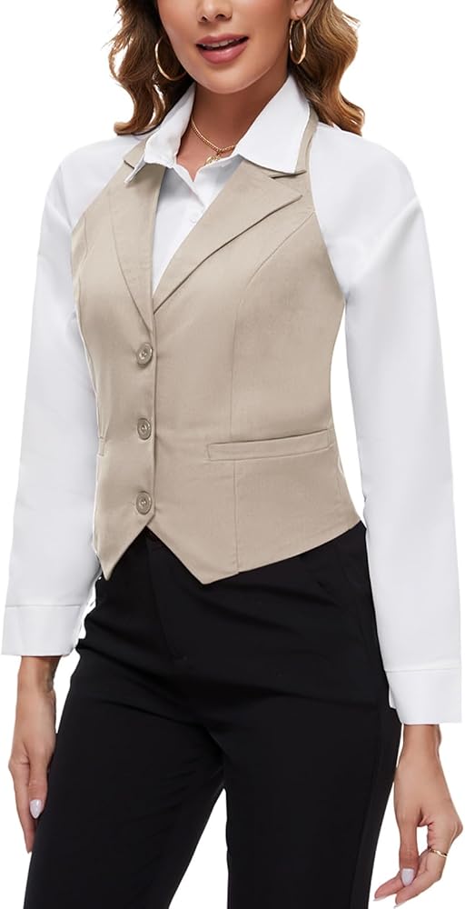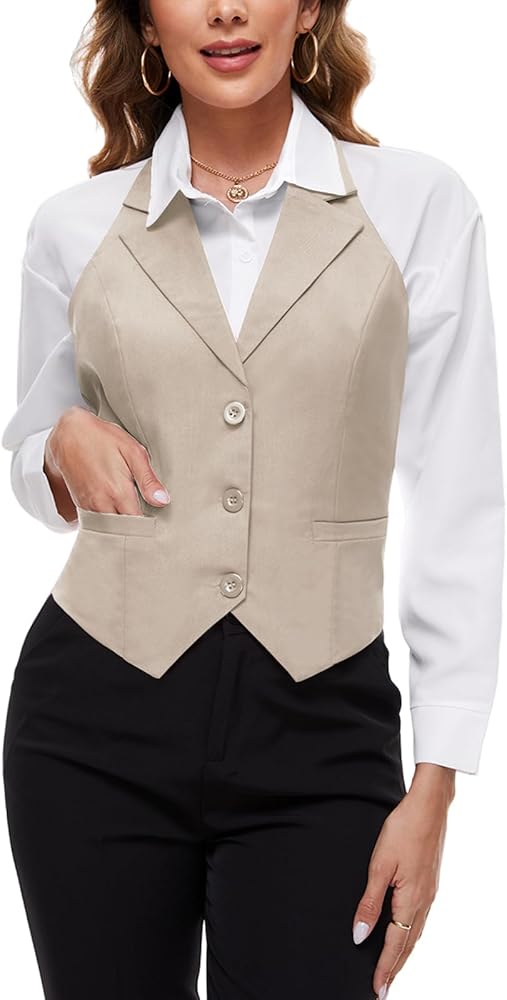 【مطابق】 يمكن بسهولة ارتداء صدريات كلاسيكية أنيقة ذات ياقة على شكل طية صدر السترة مع البلوزات والقمصان والسراويل البدلة والجينز والسراويل القصيرة والتنانير والفساتين. مناسب لفصلي الربيع والصيف، وكذلك على مدار العام.